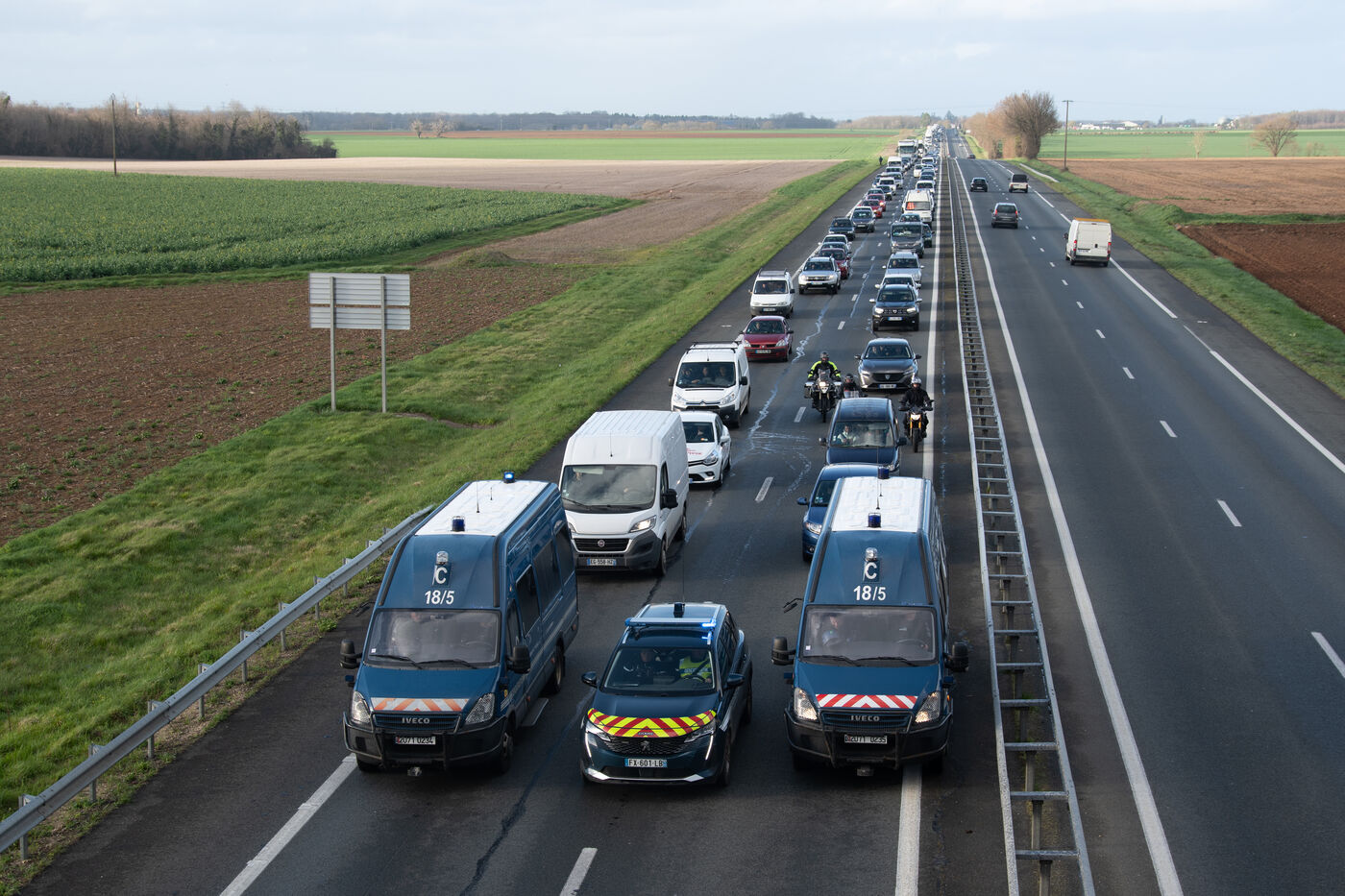 Des dizaines de tracteurs ont pris la route le 24 mars 2023 pour se rendre à Vanzay dans les Deux Sevres pour se rendre au week end de mobilisation contre les méga-bassines. Le convoi a été arreté vers la sortie 41 de la nationale 10 par les forces de l'ordre, avant de continuer son parcours.