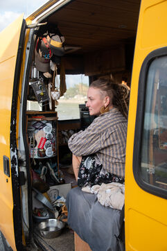 After graduating with a degree in philosophy with a major in music, she failed the conservatory entrance exam for opera singing. After completing her studies and trying her hand at life in an apartment, her desire to build something different was still very much present. So she realized the dream she'd had for 10 years and bought a van named Sarrazin, which she fitted out herself. She chose the nomadic lifestyle, a freer life where you can move your house with a turn of the key in the ignition. Living in a truck is not just a choice of habitat, but a real choice of lifestyle that allows her to constantly surpass, evolve and reinvent herself.