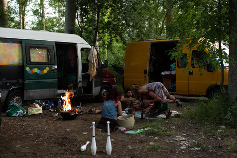 La série au long cours «Chloé et Sarrazin» débute au printemps 2022. Ces images sont des fragments de vie d'une femme de 26 ans originaire du Finistère, nomade depuis plus de deux ans et saisonnière agricole. «Chloé et Sarrazin» reflète le quotidien de Chloé, en nuance, décrivant ce mode de vie atypique.