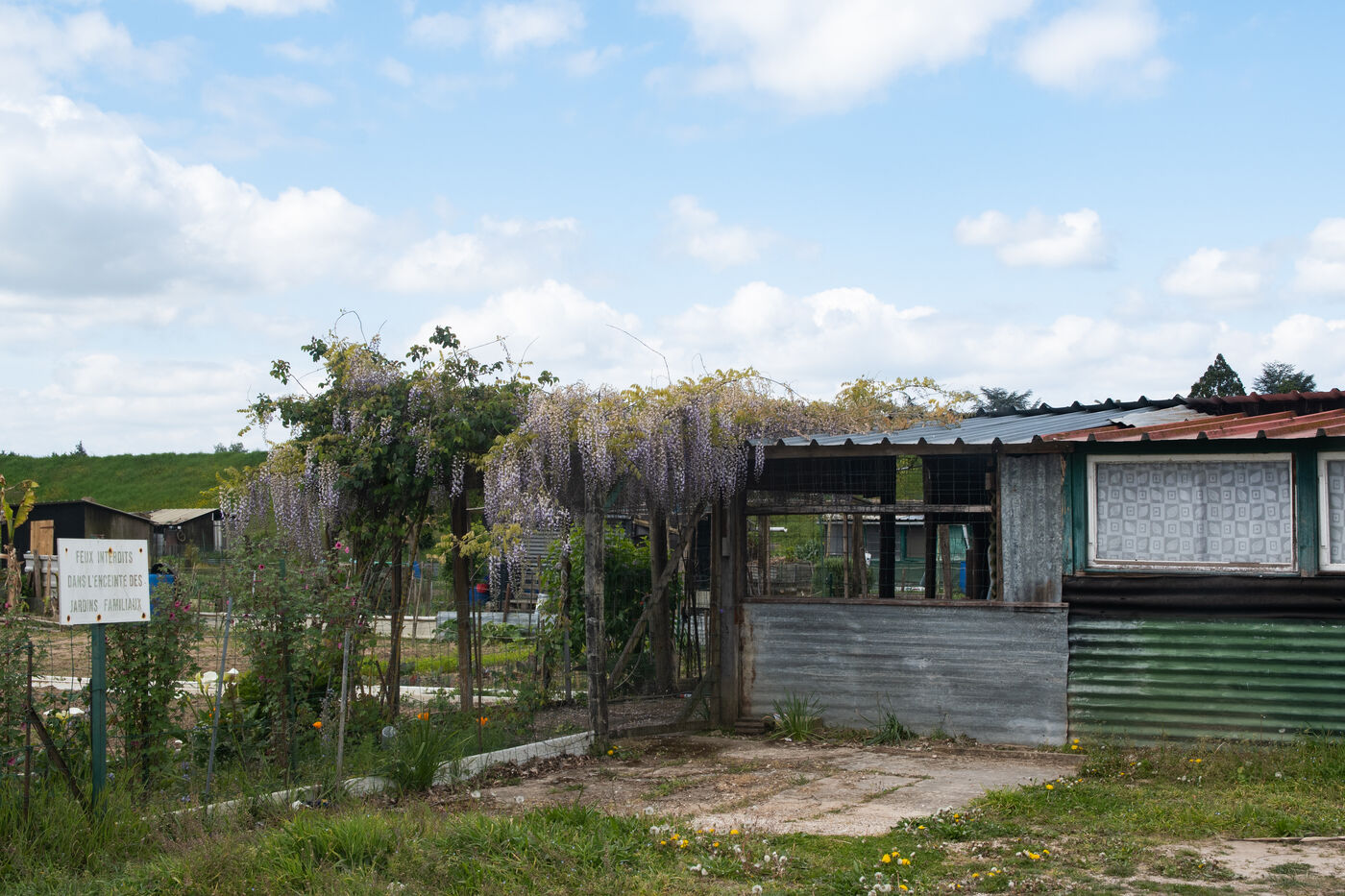Plantes et cabanons de jardins des jardins familiaux, jardins partagés à Blois en avril 2024.