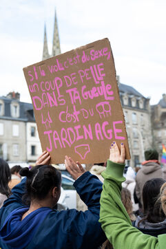 Manifestation féministe pour l’égalité entre les femmes et les hommes a Quimper dans le cadre de la journée internationale de lutte pour les droits des femmes du 8 mars 2025.