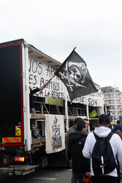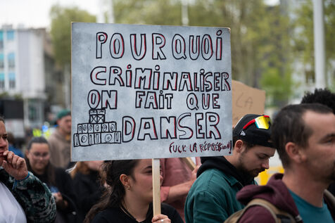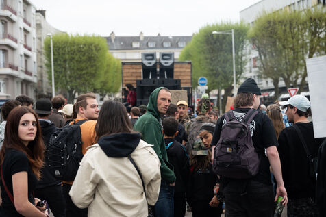 La manifestive de Lorient, a festive demonstration in defence of techno culture and free partying, also known as ‘teuf’, ‘rave party’ and ‘free party’, and against the systematic repression suffered by the movement. Several hundred people demonstrated and danced around three lorries fitted with boxes in the streets of Lorient on 12 April 2025.