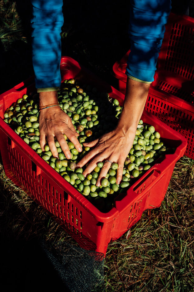 France, Forcalquier, 2023. Every year, they gather with friends and family to share the moment of the olive harvest. On this small, sloping plot of land, they pick the fruit by hand, one by one. A suspended moment, between meditation and chit-chat, where the most important thing is to be together.