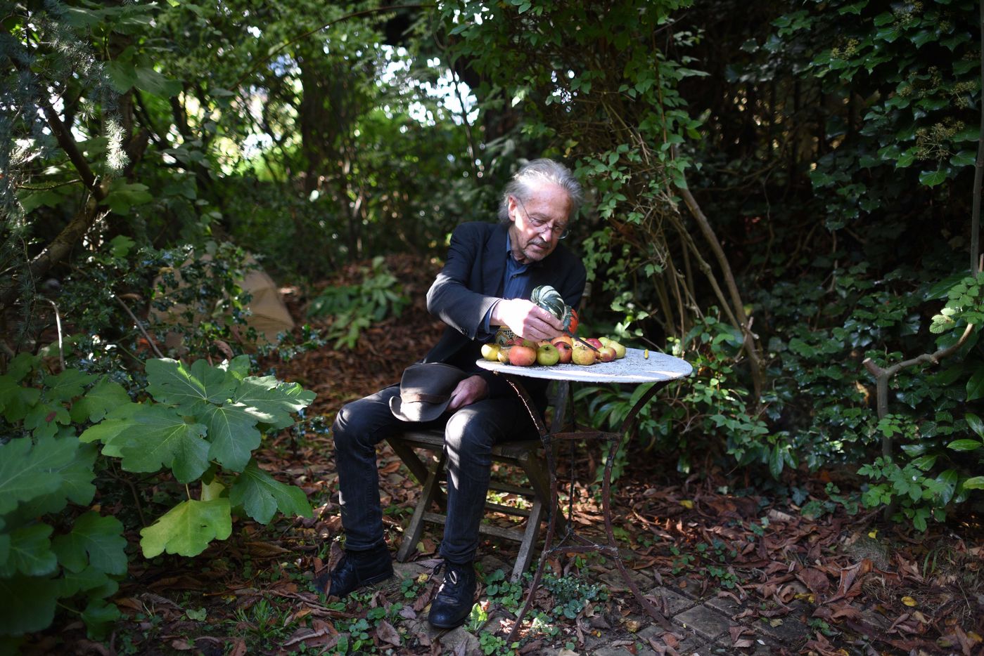 Portrait of Peter Handke in his garden in Chaville shortly after learning that he had been awarded the 2019 Nobel Prize for Literature.