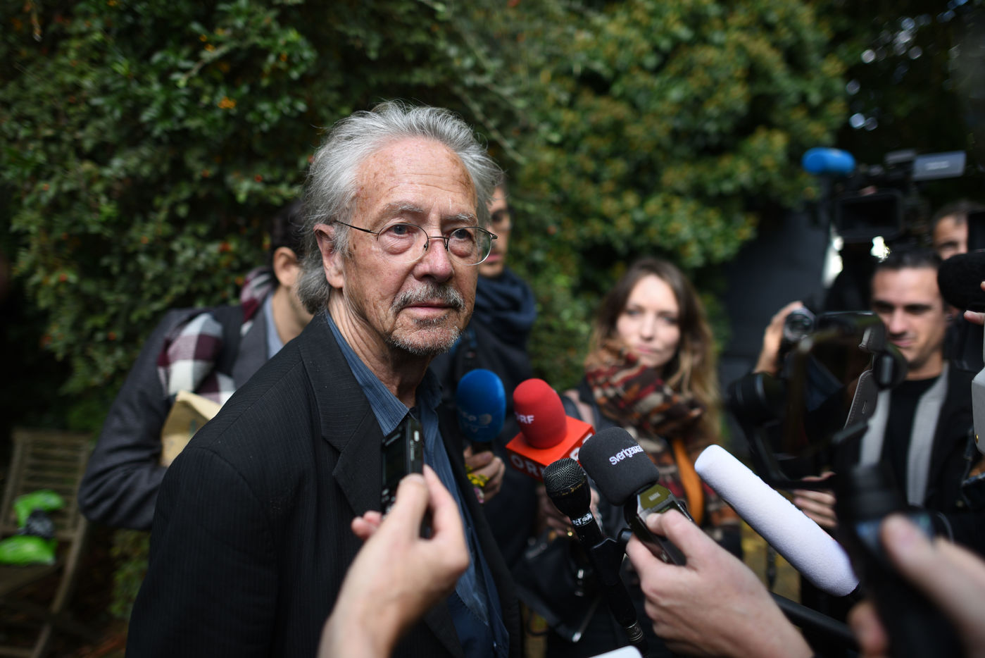 Portrait de Peter Handke dans son jardin à Chaville peu après avoir appris qu'il avait obtenu le prix Nobel de littérature 2019.