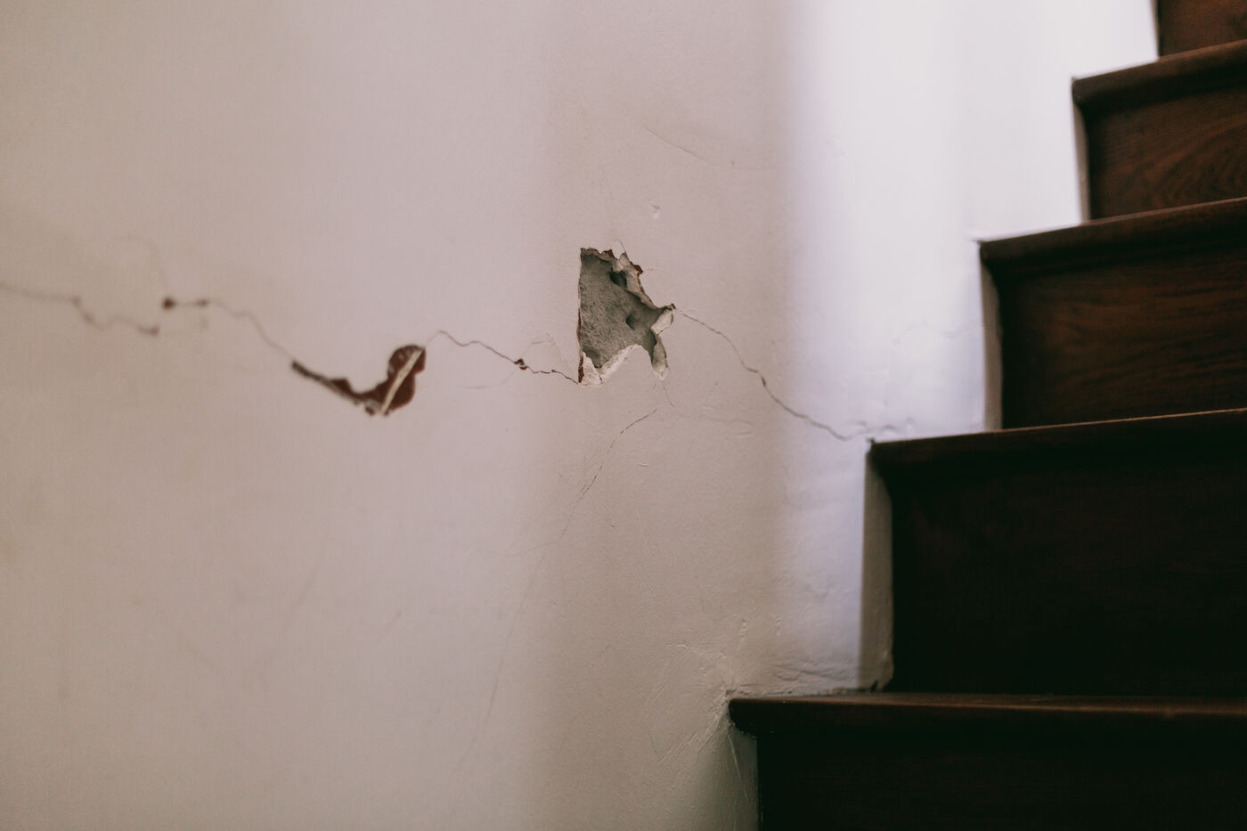 France, Le Mans - 18/03/2023. A couple from Le Mans saw multiple cracks covering the wall of their house a few years ago. With time, these cracks came to threaten the perennity of the house. The cause was the drought due to global warming and the poor foundations on a clay soil. These people spent several winters in the cold. They have since left and sold the house. The house will be demolished and a new one will be built on a healthier foundation.