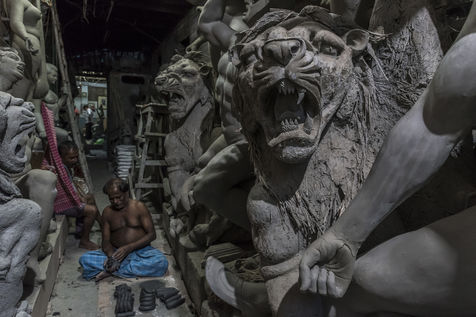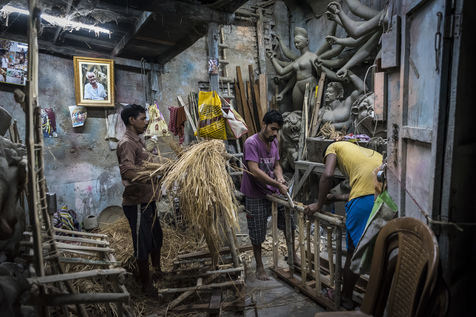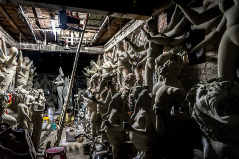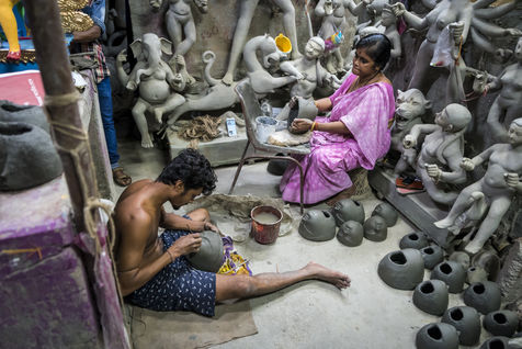 Le pittoresque quartier de plus de 300 ans dans le nord de Calcutta, le long de la riviere Hoogly, entre le Sovabazaar et Bagbazar se transforme en un centre anime juste avant le Durga Puja, qui est la plus grande fete magnum opus de 5 jours des Bengalis dans le monde entier. Kumartuli (Kumar-Potier et Tuli-Reglement), comme son nom l indique, est la localite des potiers, ou la famille des potiers (actuellement environ 150 familles) vit et travaille.