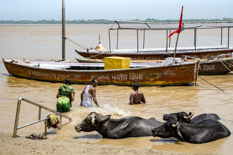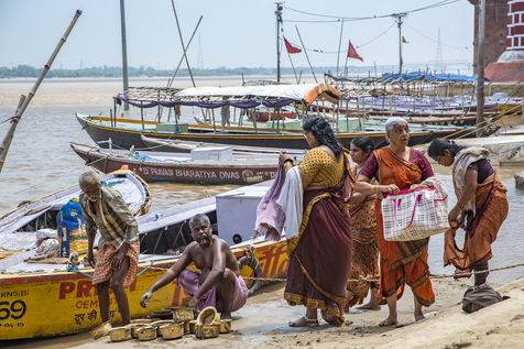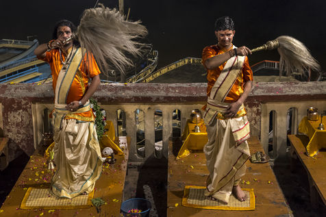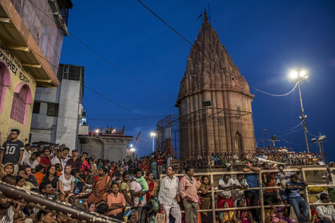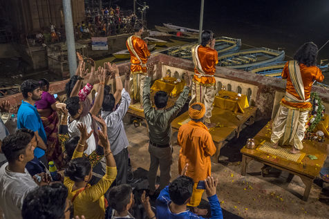 Les ghats de Varanasi apres l'inondation et le rituel sacre de Ganga Aarti