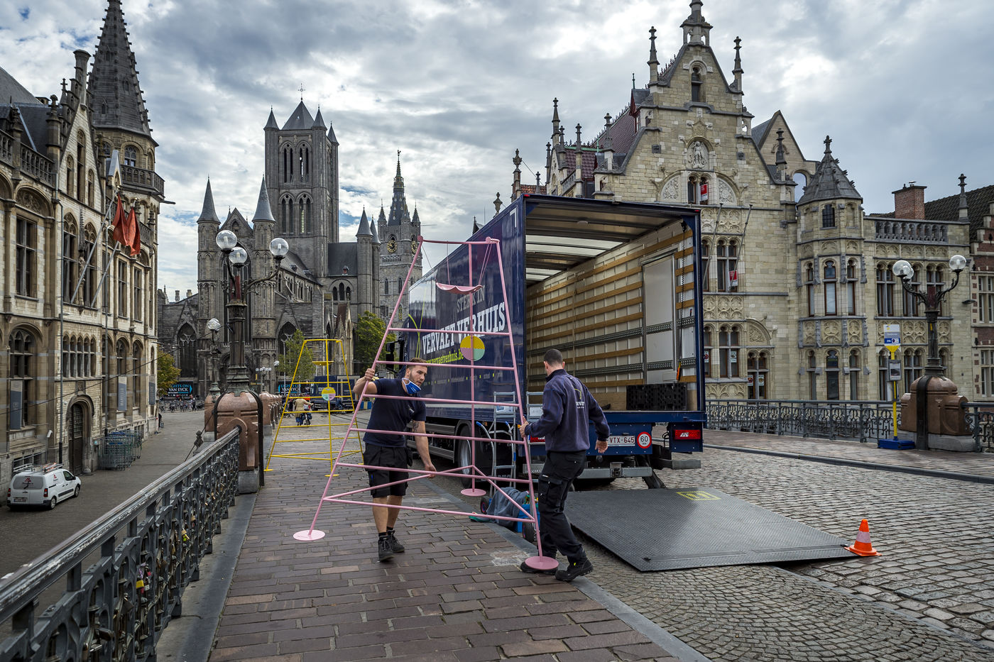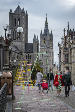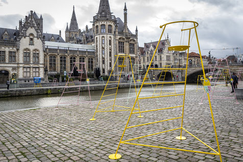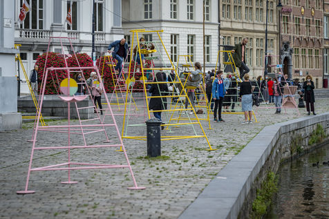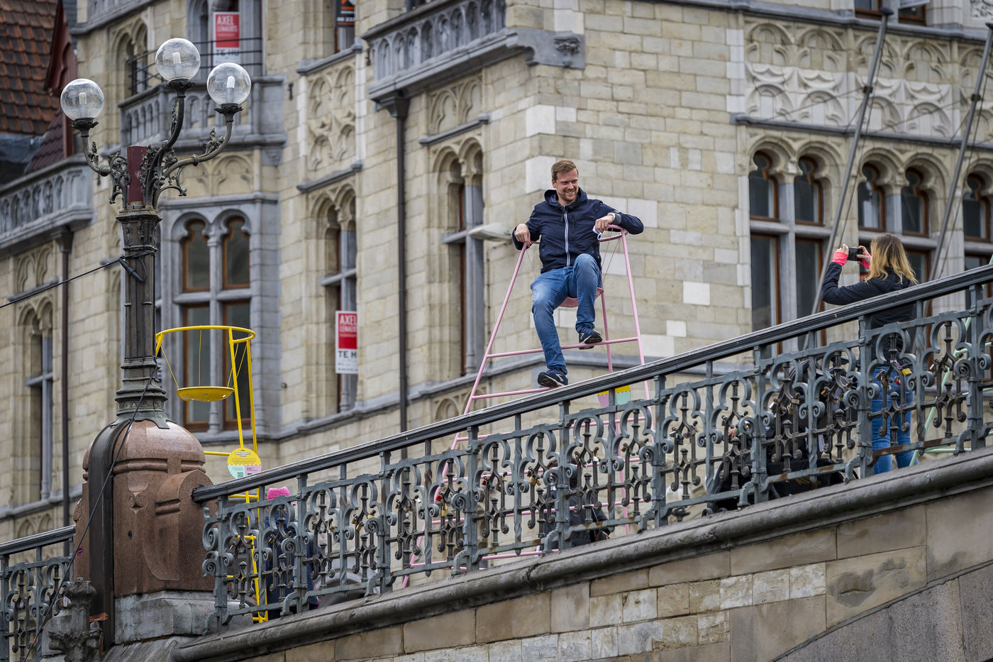 Official launch of the wijkbudget with the set up of fifty colossal colourful chairs in the Korenlei Graslei and Saint Michaels bridge