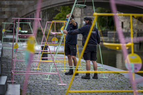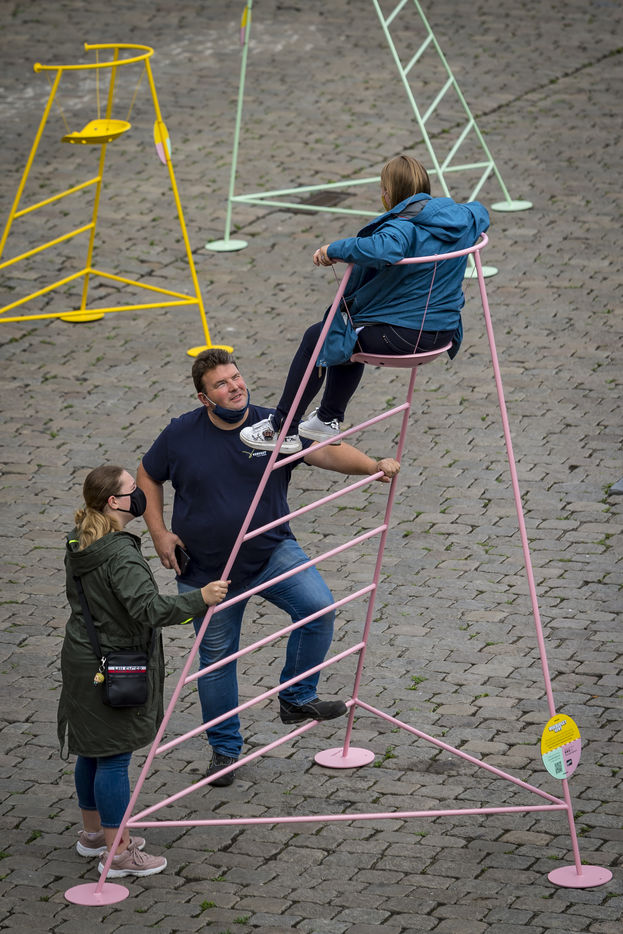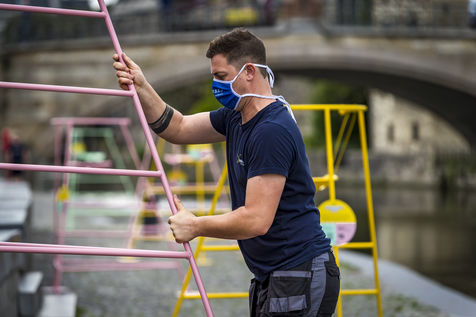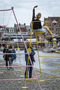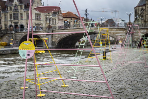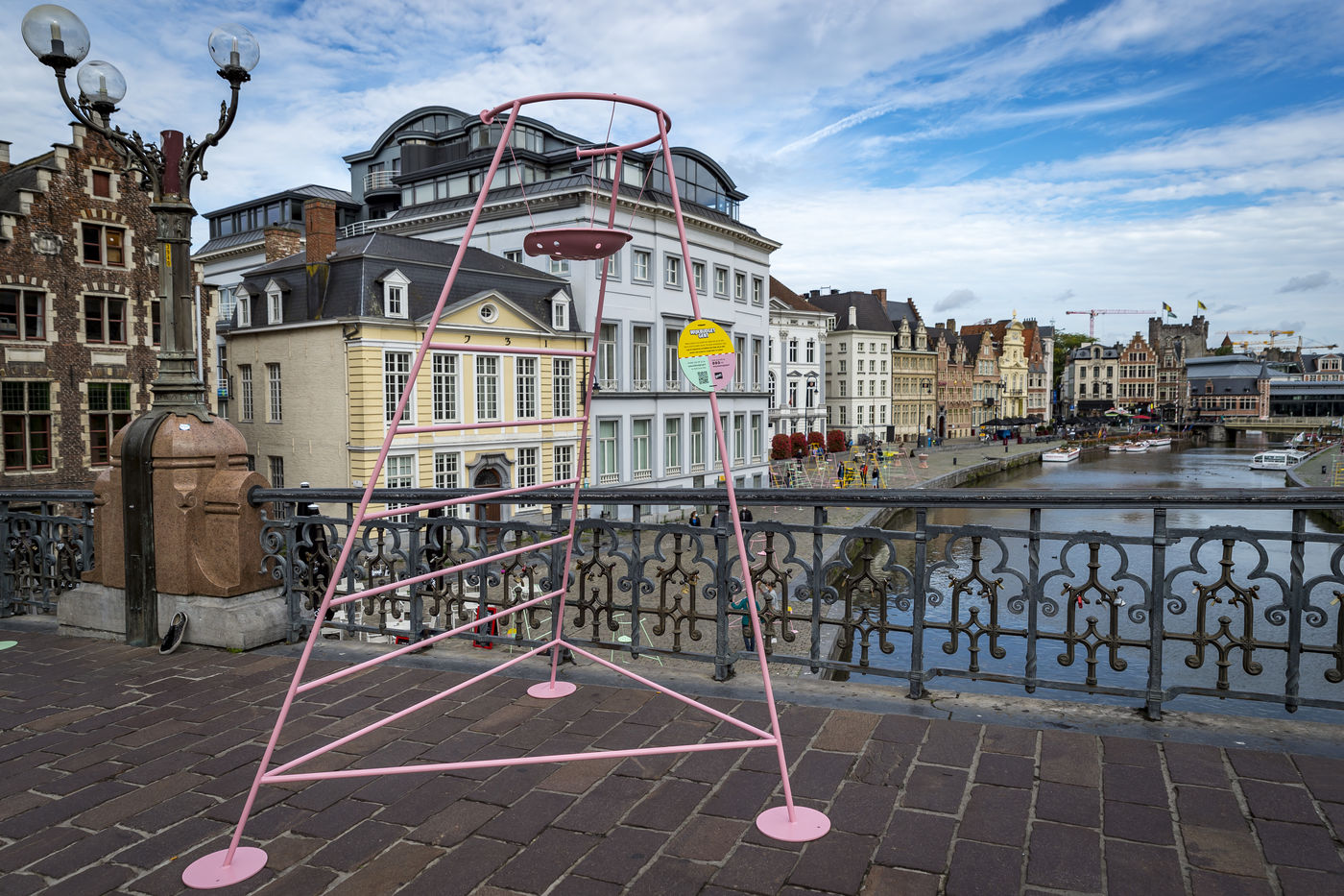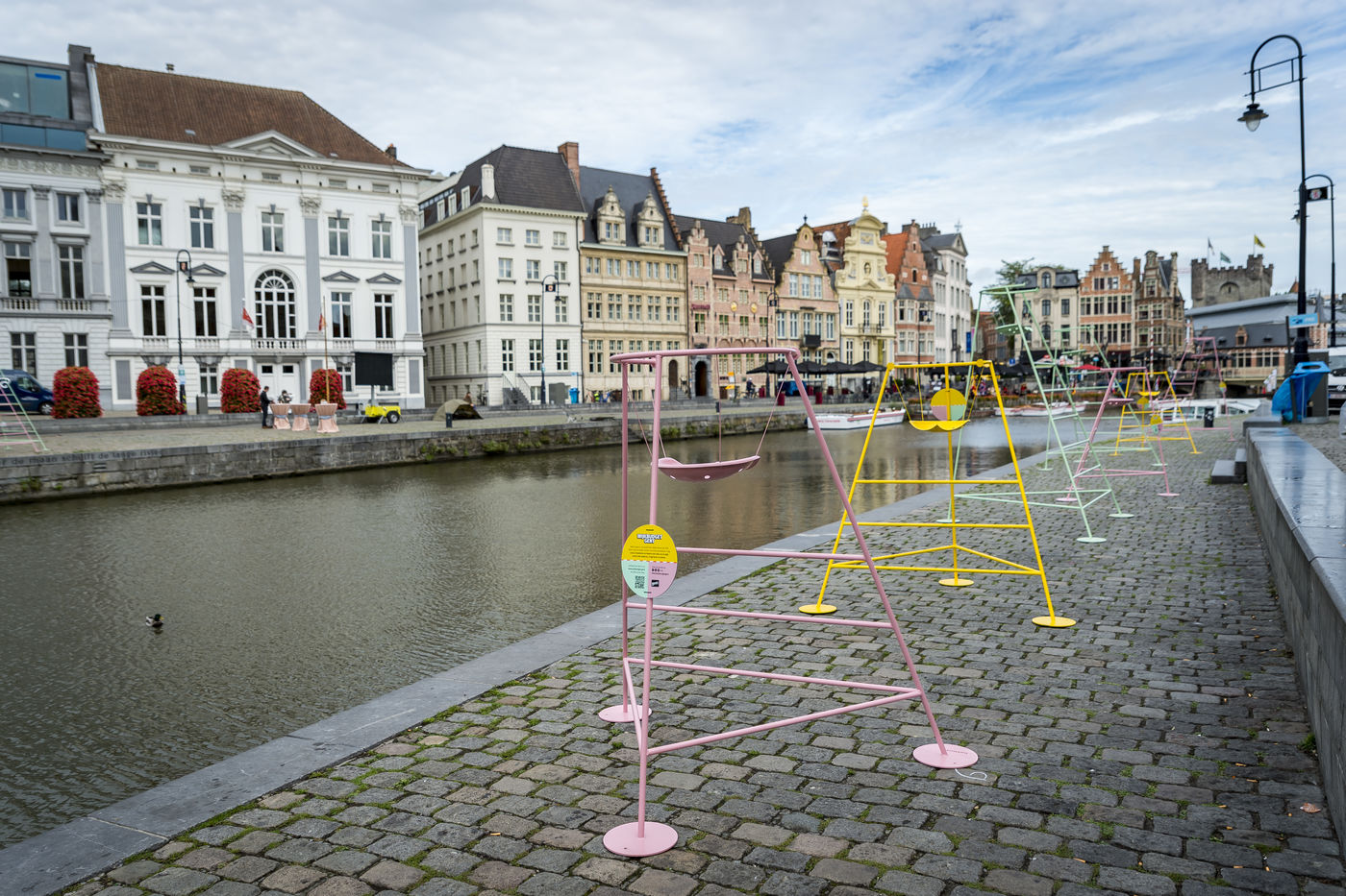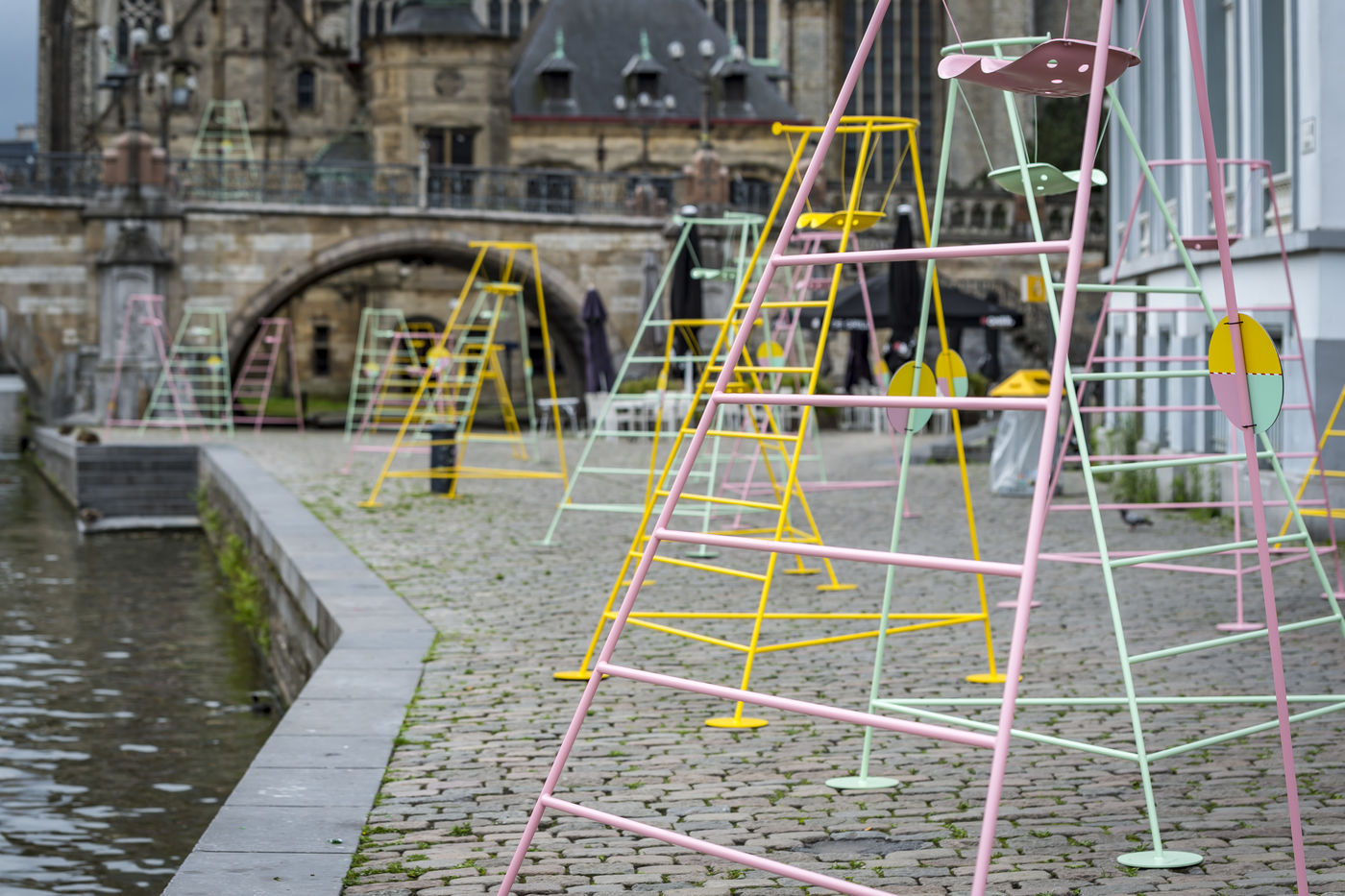 On 4th September happened the official launch of the wijkbudget the neighborhood budget. Fifty colossal, colorful chairs designed by Lien Van Deuren were be set up on Graslei and Korenlei. Alderman of Participation Astrid De Bruycker gave more information about the budget and on the same day, all chairs move to the eleven neighborhoods that will be discussed first. Local residents can move them, sit on them, and thus in a symbolic way gain inspiration for creative ideas for their neighborhood looking the city from various new different angles. Within the framework of the neighborhood budget, the City of Ghent is making 6.25 million euros available for the 25 Ghent neighborhoods.