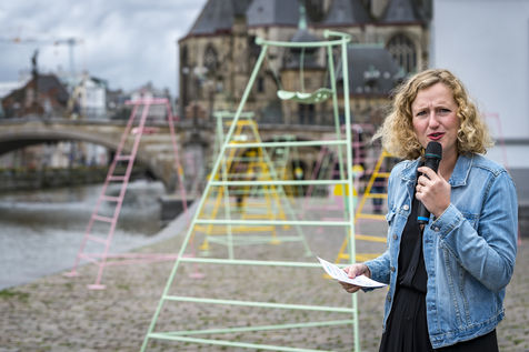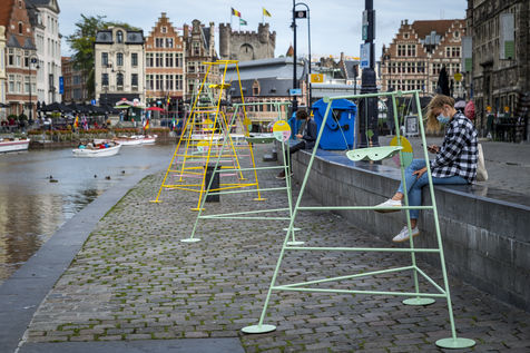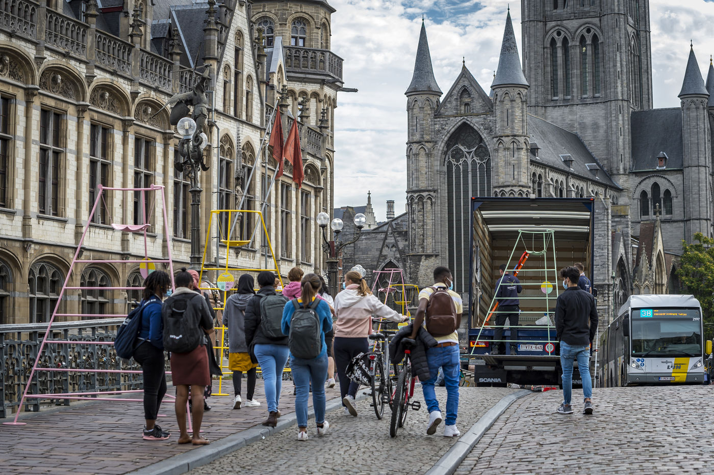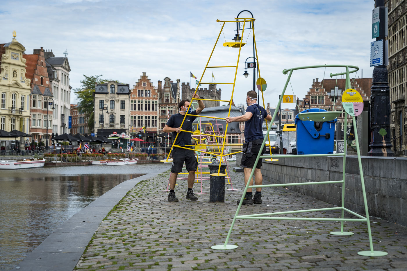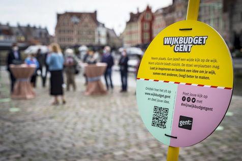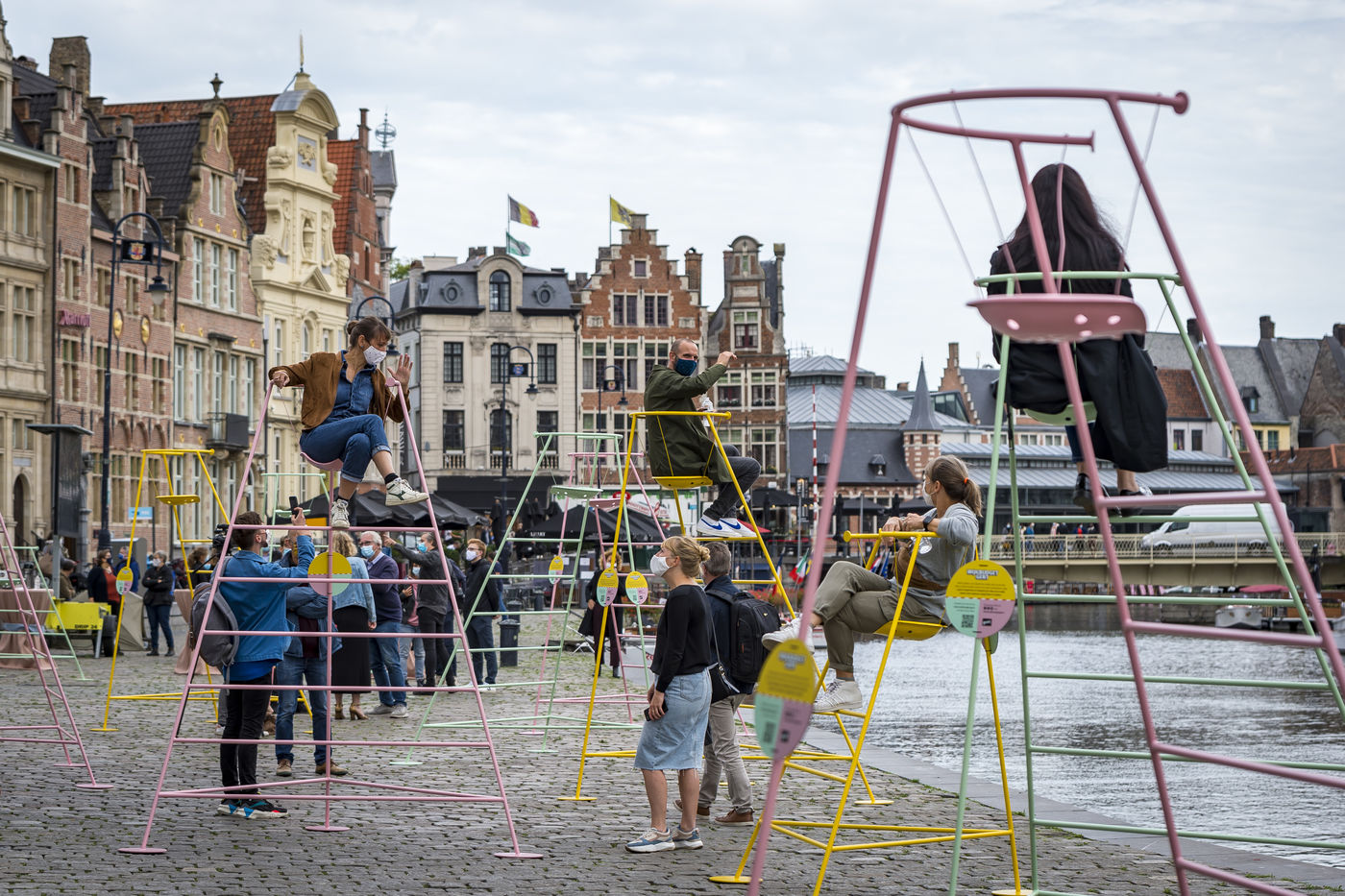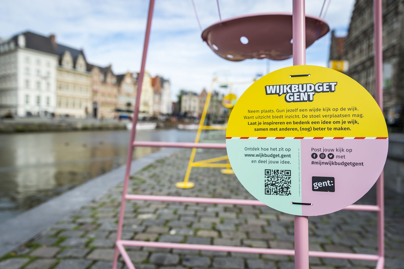 Le 4 septembre a eu lieu le lancement officiel du budget wijkbudget du quartier. Cinquante chaises colossales et colorees concues par Lien Van Deuren ont ete installees sur Graslei et Korenlei. L echevin de Participation Astrid De Bruycker a donne plus d informations sur le budget et le meme jour, tous les presidents se deplacent dans les onze quartiers qui seront discutes en premier. Les residents locaux peuvent les deplacer, s asseoir dessus et ainsi, de maniere symbolique, s inspirer d idees creatives pour leur quartier en regardant la ville sous differents angles differents. Dans le cadre du budget de quartier, la Ville de Gand met a disposition 6,25 millions d euros pour les 25 quartiers de Gand.
