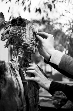 Le 3 novembre 2017, Paris, 14 ème arrondisement, cimetière Montparnasse, Toussaint. Un visiteur aveugle fait une visite tactile et découvre les tombes.