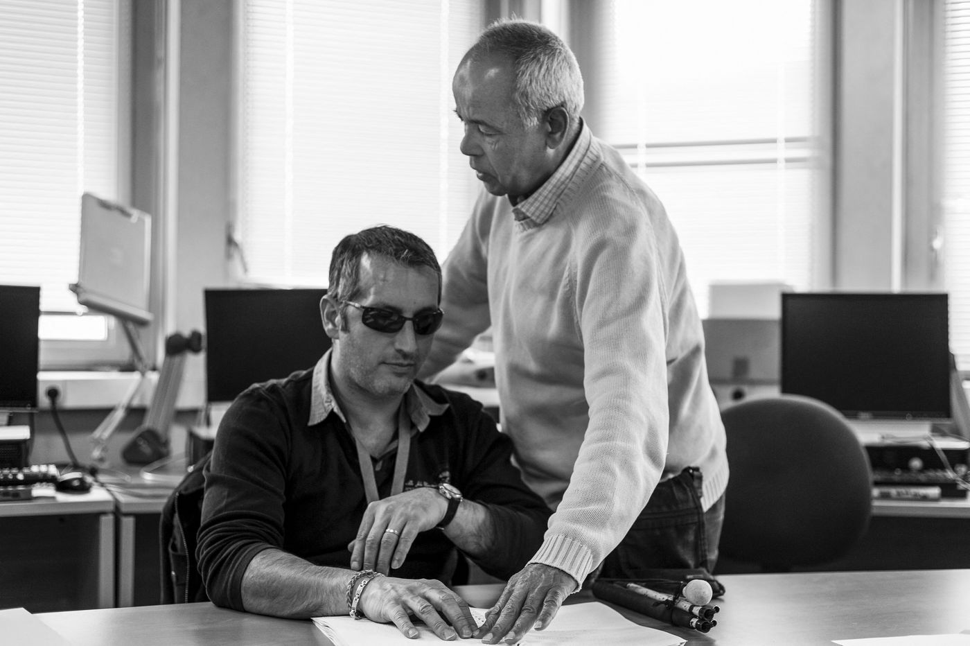 Nous avons donc suivi Gilles en cours, avec ses amis malvoyants et aveugles, avec ses professeurs dans ses victoires et dans ses doutes, seul et avec les autres.