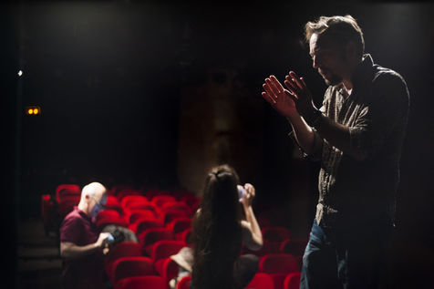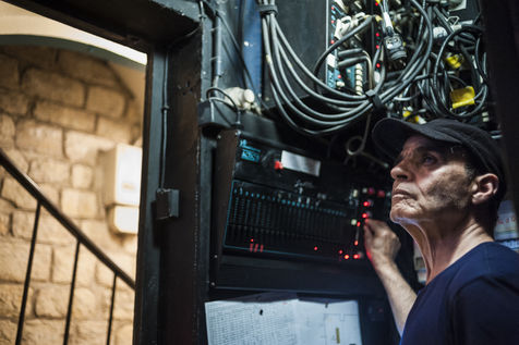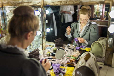 Ici l'administrateur est aussi costumier, la caissière couturière, les acteurs habilleurs, maquilleurs et techniciens. La troupe n'hésite d'ailleurs pas à traverser, toute la soirée, le hall du vieil immeuble du quartier latin pour aller des loges à la scène.