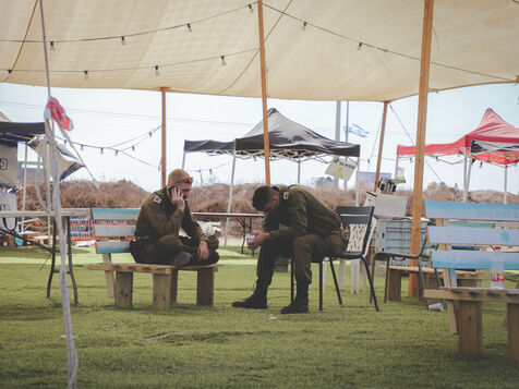 Soldiers camp a few kilometers from the Gaza border. They return from combat, drained — voices low on the phone, waiting in line at a makeshift food truck, silence wrapped in fatigue.