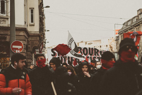 France, Strasbourg, 2022-03-12. About 700 people demonstrated against the extreme right in Strasbourg. Photography by Mathilde Cybulski / Hans Lucas.