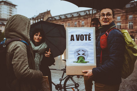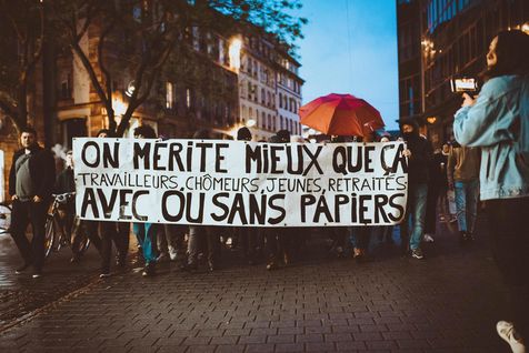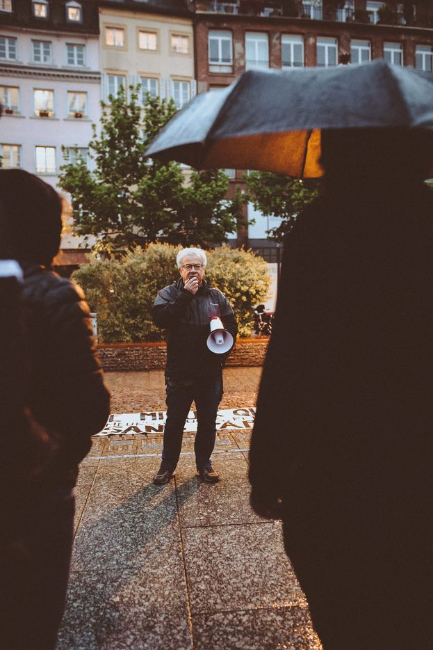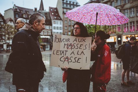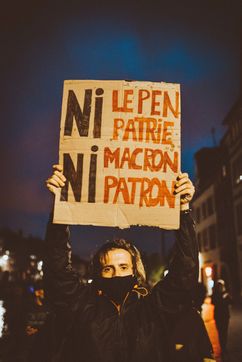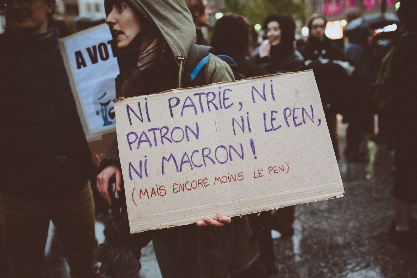 France, Strasbourg, 2022-04-24. Demonstration following the results of the presidential elections. Photography by Mathilde Cybulski / Hans Lucas.