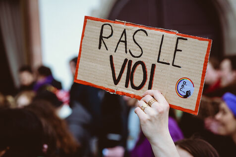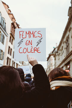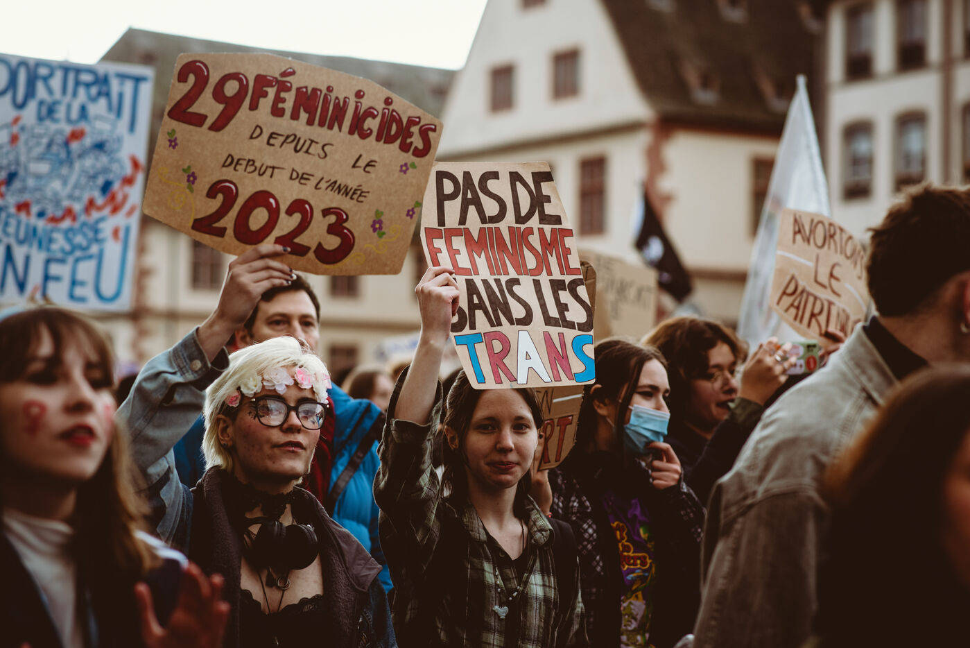 France, Strasbourg, 03-08-2023. Feminist march on the occasion of the day of struggle for the right of women. More than 2000 people marched. Head of the procession in mixed gender, followed by a mixed procession and then by trade unionists. Photo Mathilde Cybulski / Hans Lucas.