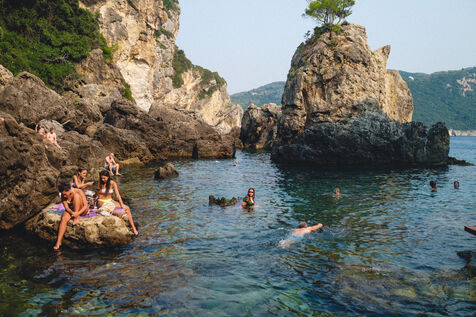 Greece, Corfu, August 2023. Summer immersion on the island of Corfu, bordered by the Adriatic and Ionian Seas, at the height of the tourist season. Its rich cultural heritage, inherited from years of French, Venetian and British domination, contrasts with the lifestyle typical of busy seaside resorts. Photo Mathilde Cybulski / Hans Lucas.
