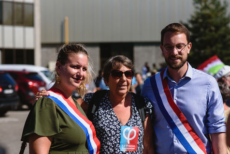 France, Illkirch-Graffenstaden, 05-09-2023. Mathilde Panot and Emmanuel Fernandes, LFI deputies, support the strikers at the Clestra factory. Employees have been on strike for over two months following the company's takeover by the Jestia group. Photo Mathilde Cybulski