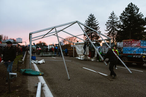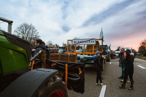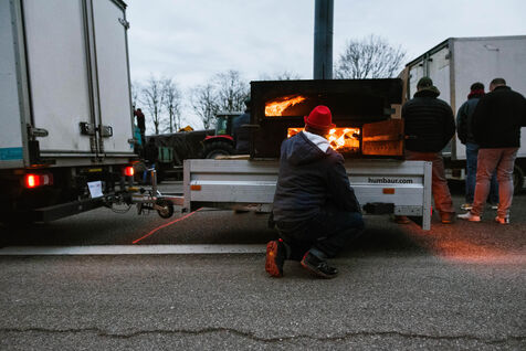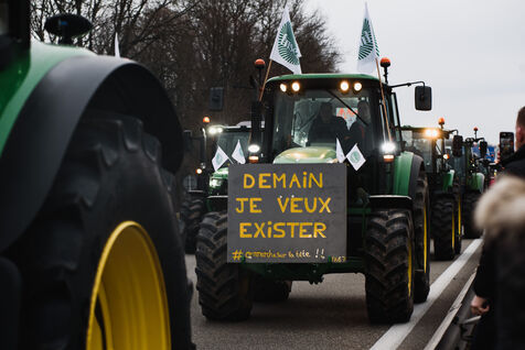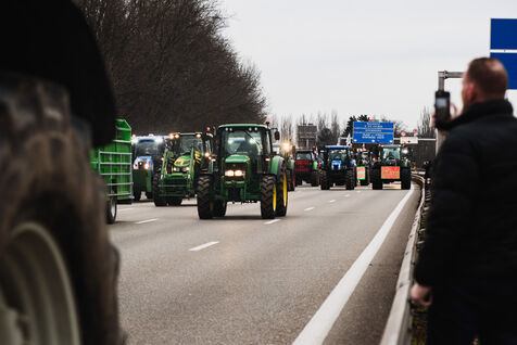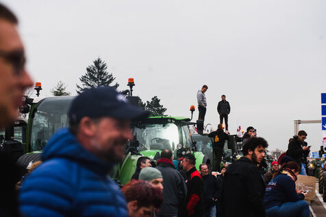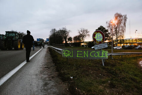 France, Strasbourg, 30-01-24. Farmers block the M35 again. Even more numerous than at the first blockade, several hundred farmers block the freeway with their tractors and intend to stay overnight. Photo Mathilde Cybulski / Hans Lucas.