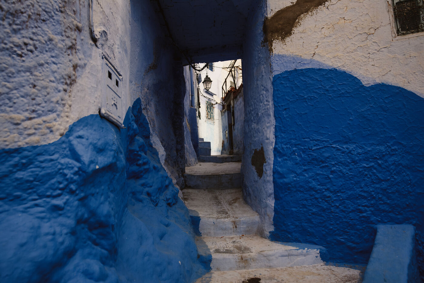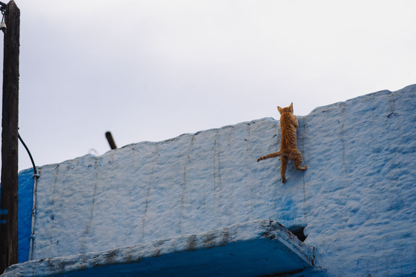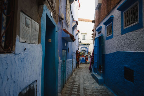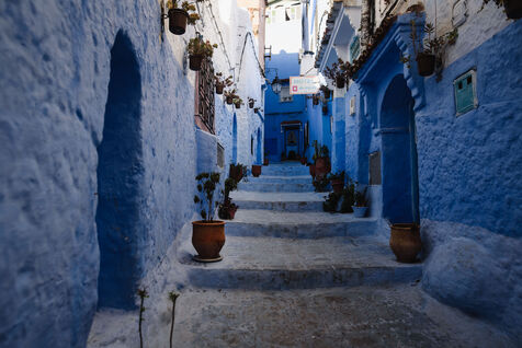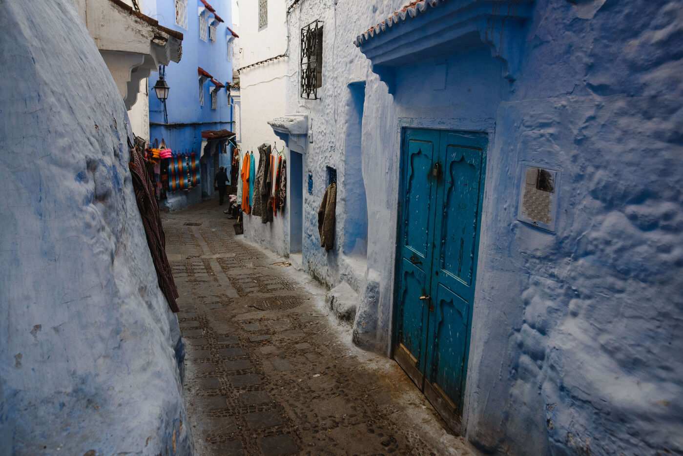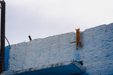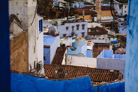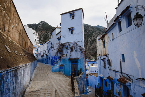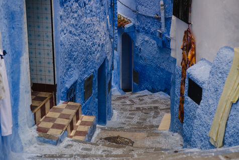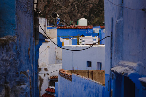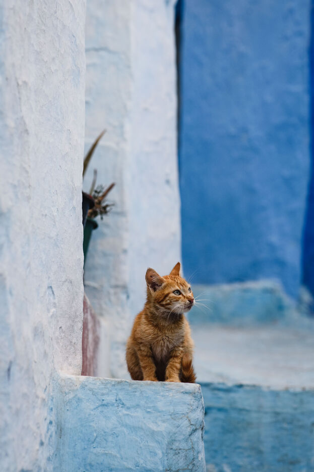 Maroc, Chefchaouen, 09-02-24. Chefchaouen, appelée aussi la ville bleue, se niche dans les hauteurs des montagnes du Rif, dans le Nord-Est du Maroc. Entre ses facades peintes d'un camaieu de bleu, les ateliers de tissages et les nombreux chats qu'on y croise, Chaouen dégage une ambiance quasi onirique. Sa médina très charismatique fait le bonheur des touristes, qu'on croise bien souvent l'appareil photo à la main.