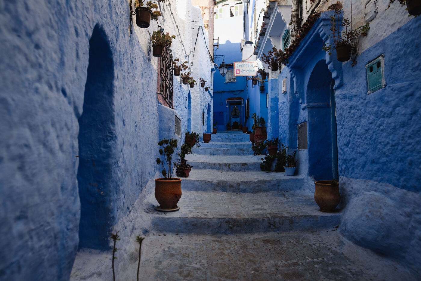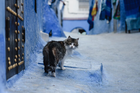 Morocco, Chefchaouen, 09-02-24. Chefchaouen, also known as the Blue City, nestles in the heights of the Rif mountains in northeastern Morocco. With its blue-painted facades, weaving workshops and numerous cats, Chaouen exudes an almost dreamlike atmosphere. Its charismatic medina is a delight for tourists, who often come across it with camera in hand.