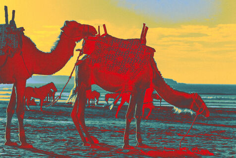 Maroc, Essaouira et Sidi Kaouki, février 2024. En février 2024, le Maroc a connu de nouveaux records de température. Plus de 36°C ont été enregistrés à l'ombre de la médina d'Essaouira ou sur la plage de Sidi Kaouki, dans le sud du pays. Rien qui n'ait cependant perturbé les habitudes de ces haut lieux touristiques. Malgré les restrictions d'eau et la chaleur écrasante, les corps surchauffent au soleil, les coeurs s'emballent, la vie quotidienne se poursuit.