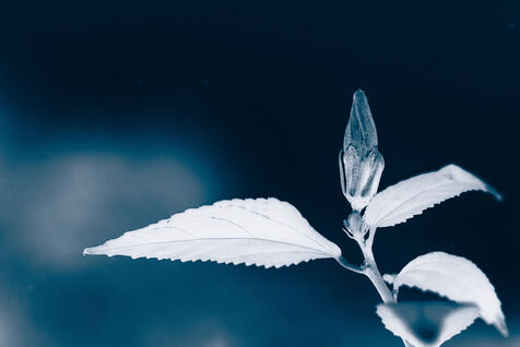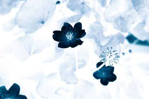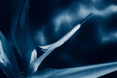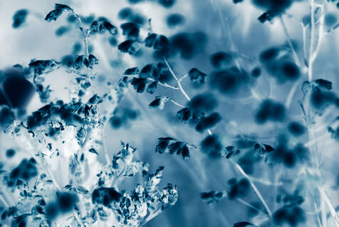Vues azurées du jardin botanique de l'université de Strasbourg et du jardin Majorelle de Marrakech, printemps 2024. Cette série propose une vision artistique et personnelle de l'intimité de ces mondes végétaux.