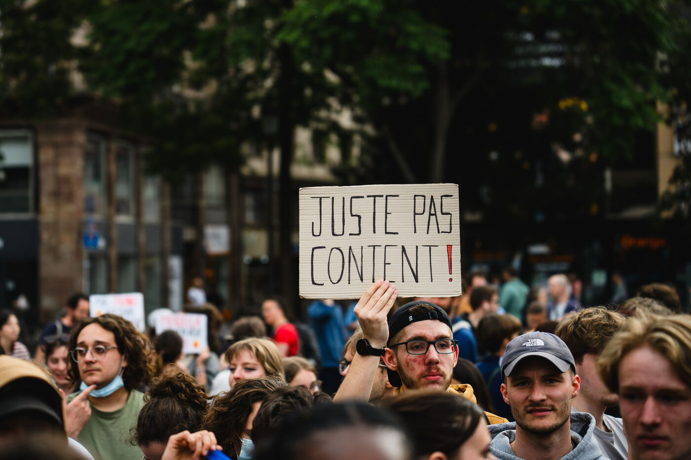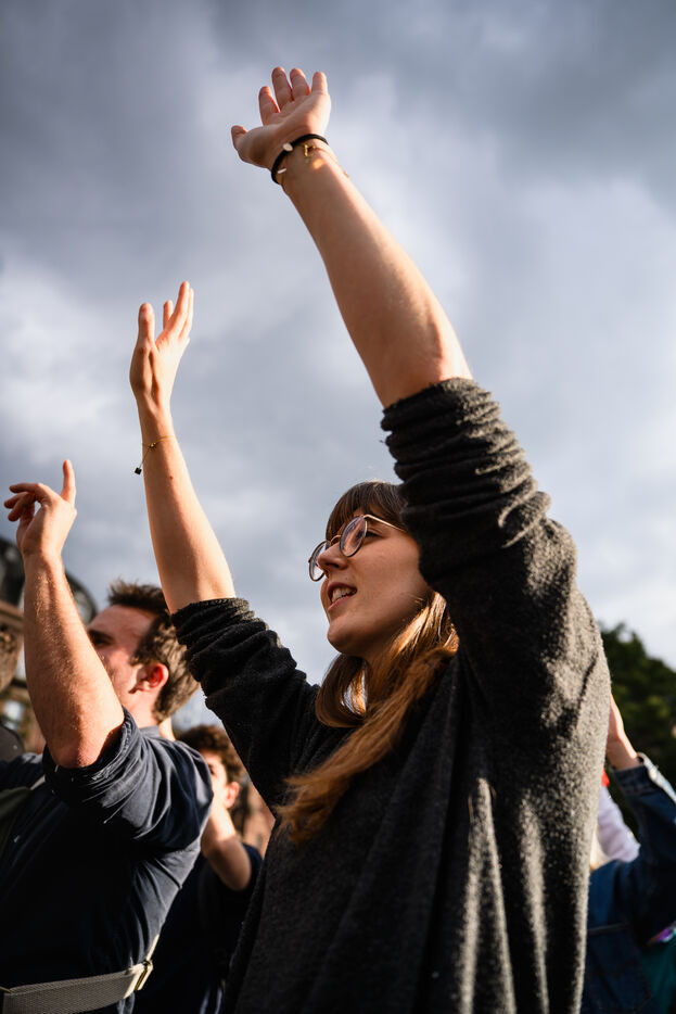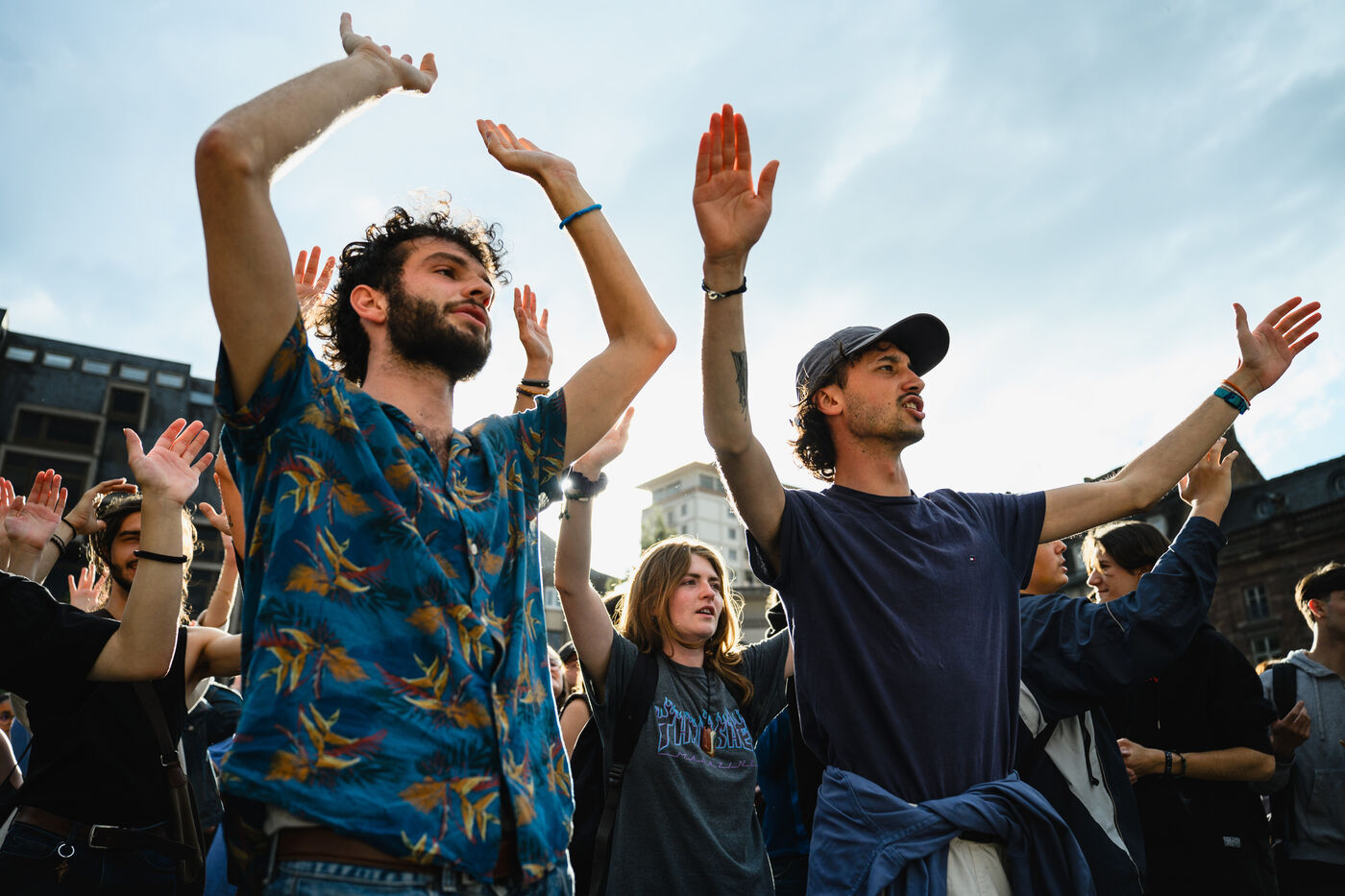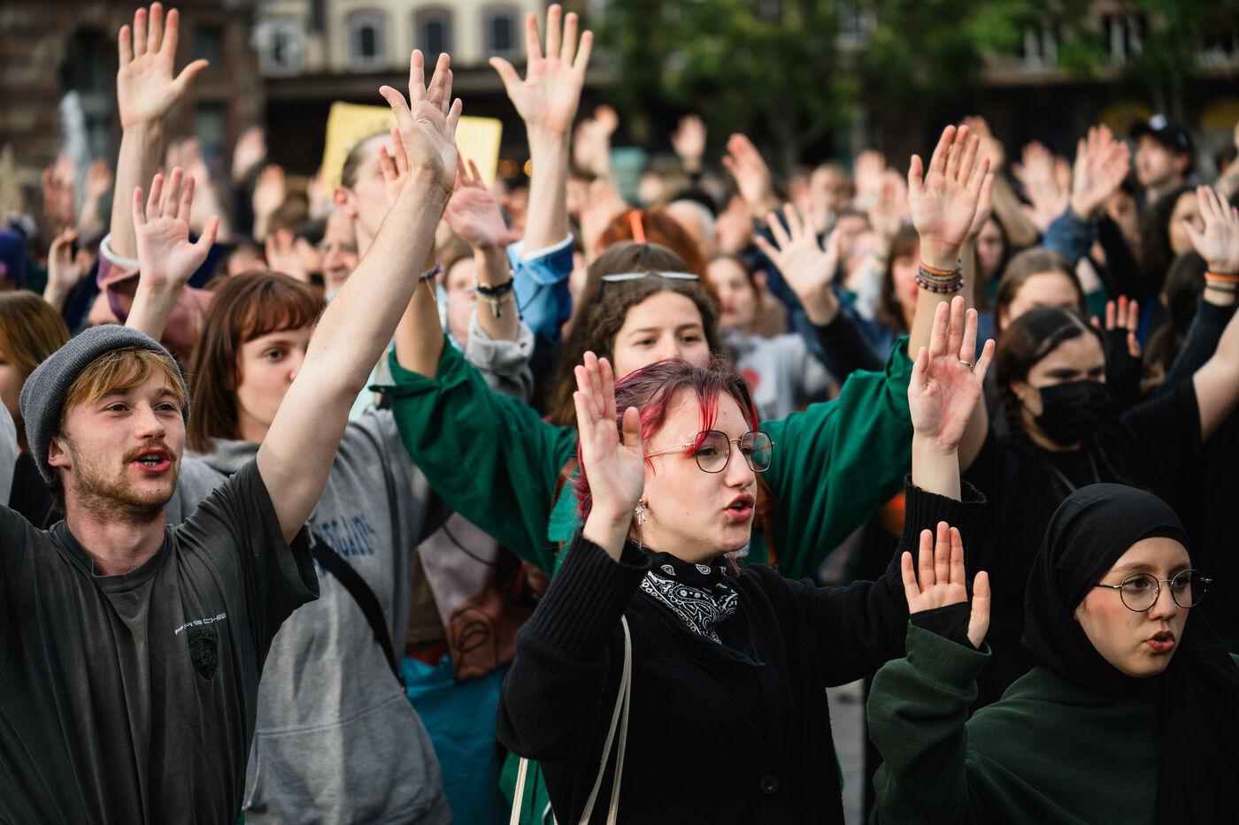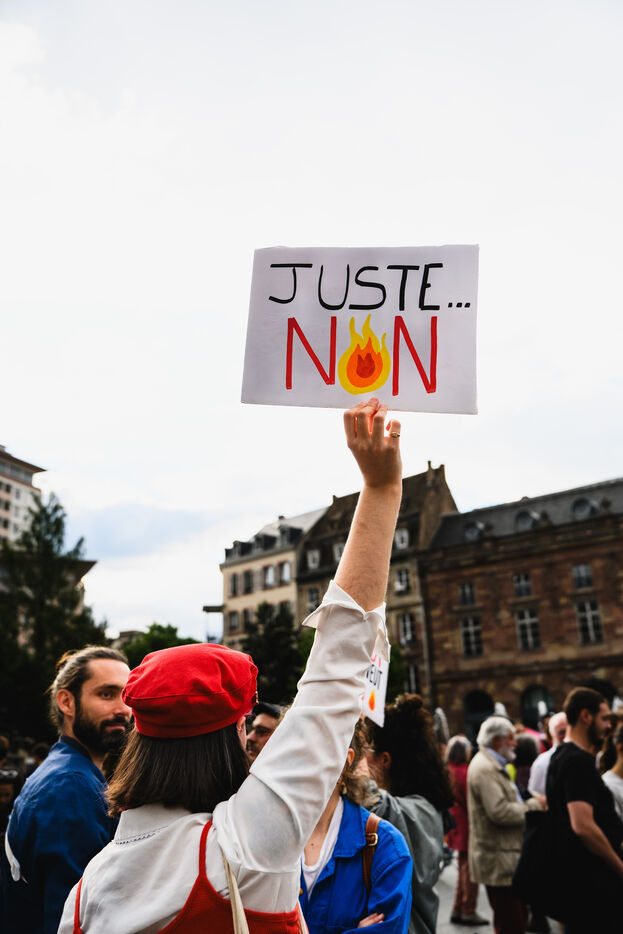 Manifestation spontanee contre l extreme droite a Strasbourg, dans l'est de la France, le 10 juin 2024. La manifestation a eu lieu au lendemain des elections europeennes alors que le rassemblement national, parti d extreme droite francais, arrive en tete.