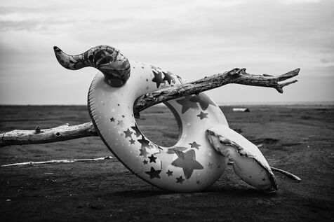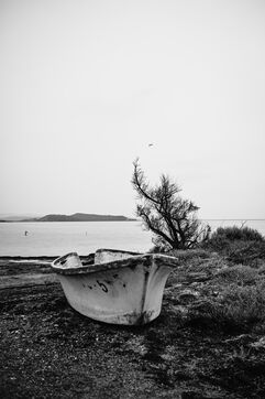 France, Sigean and surrounding area, September 2024. On the beach, a few starfish, shells, the muffled sound of our footsteps. Snatches of conversation here and there, interspersed with long silences. Here, the remains of a dolphin ooze into the sand. The scene resonates, vibrates, impacts my thoughts.