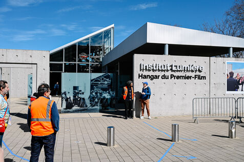 For the occasion, extras were invited to re-enact the mythical scene of the workers exiting the factory, breathing new life into this founding shot in the history of cinema.