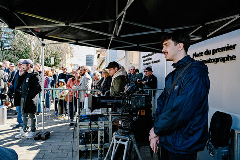 Tournage des "Nouvelles Sorties d’Usine", 130ème anniversaire de la naissance du cinéma
