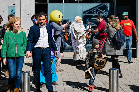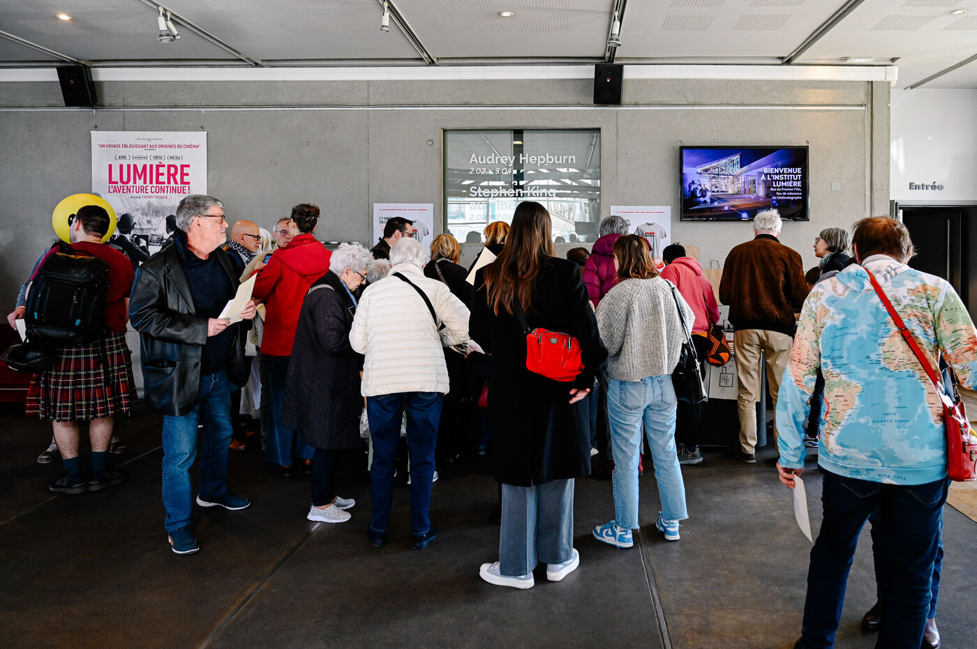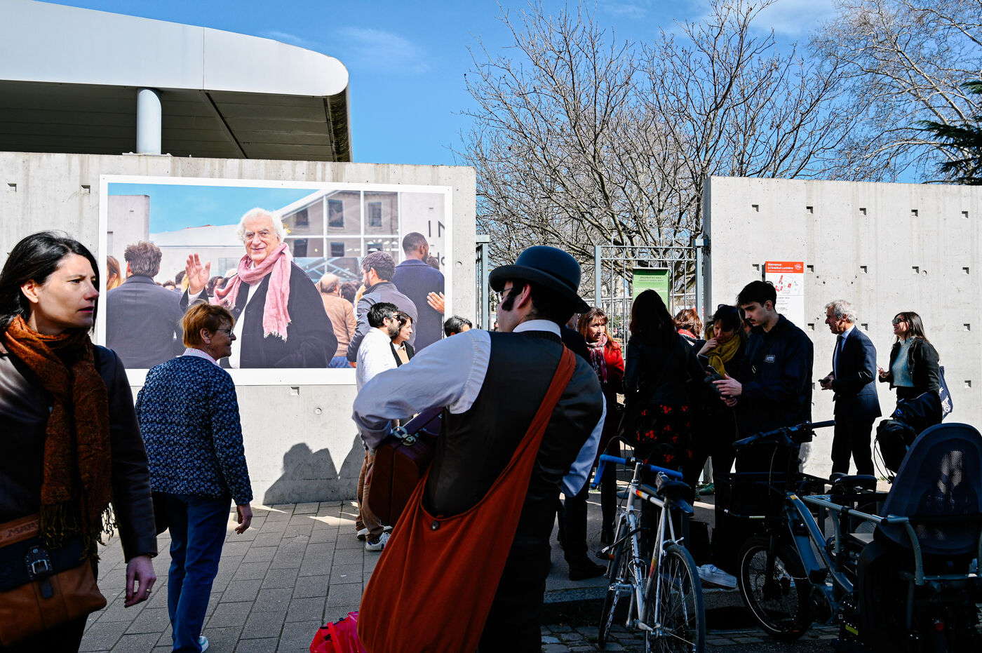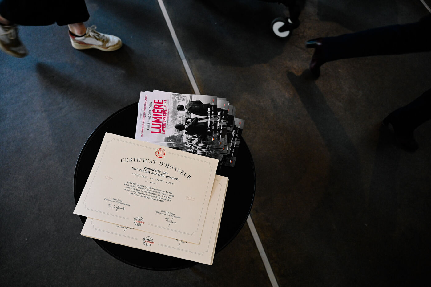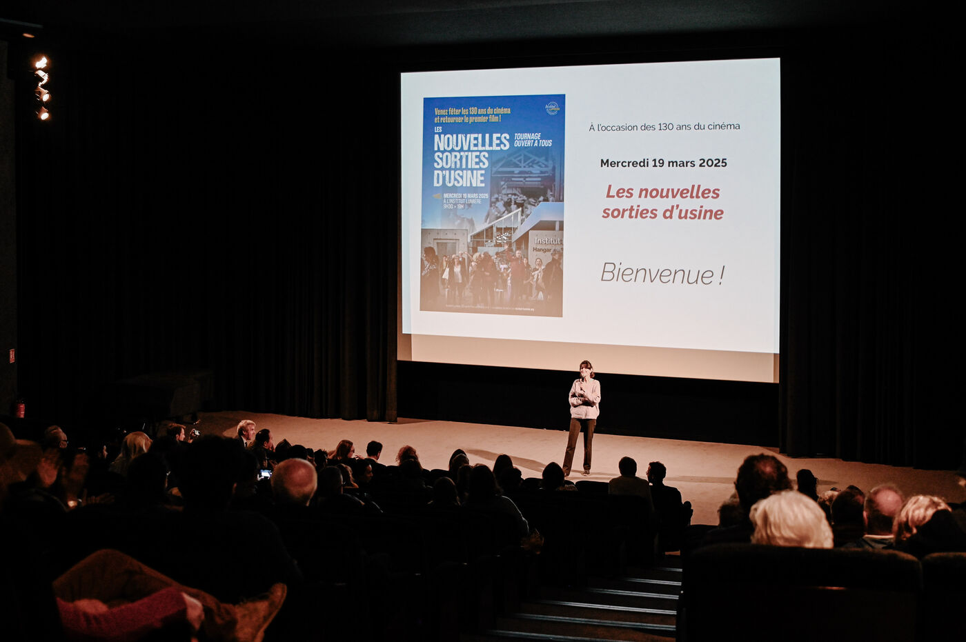 Pour l’occasion, des figurants ont été invités à rejouer la scène mythique de la sortie des ouvrières et ouvriers, redonnant vie à ce plan fondateur de l’histoire du cinéma.