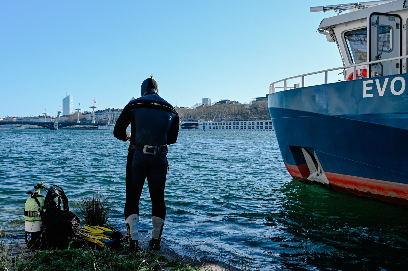 On Monday March 31, 2025, the Diving for Future association led a clean-up operation on the Rhone in Lyon, mobilizing divers, volunteers and citizens committed to preserving the environment.