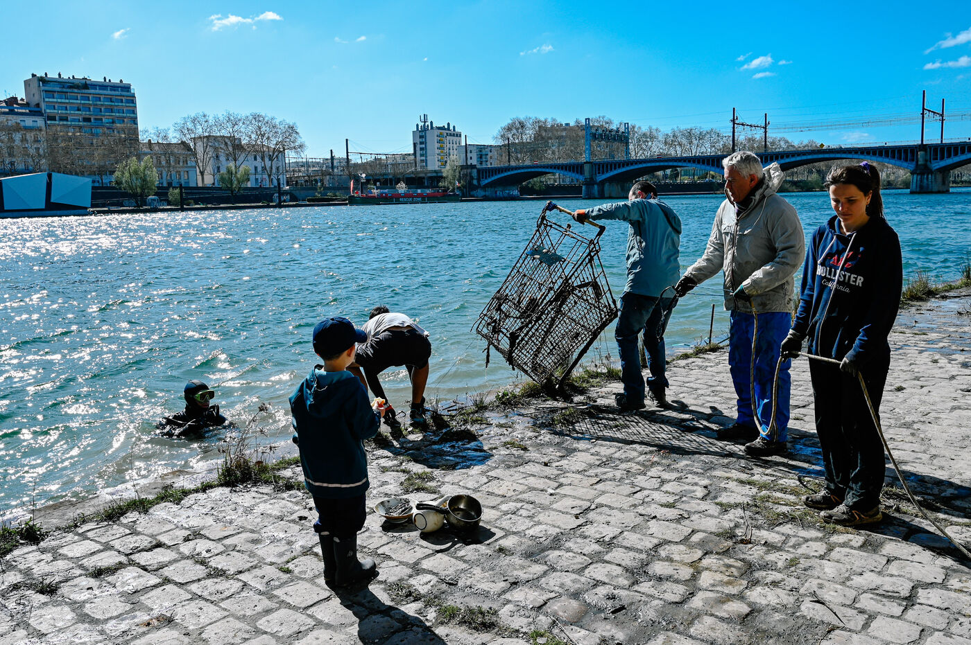 Equipped with wetsuits and diving gear, volunteers explored the river's depths to extract waste, metals and abandoned objects, visible evidence of the pollution threatening aquatic ecosystems. On land, other participants collected plastic and garbage from the banks, raising public awareness of the need for collective action to protect the Rhone.