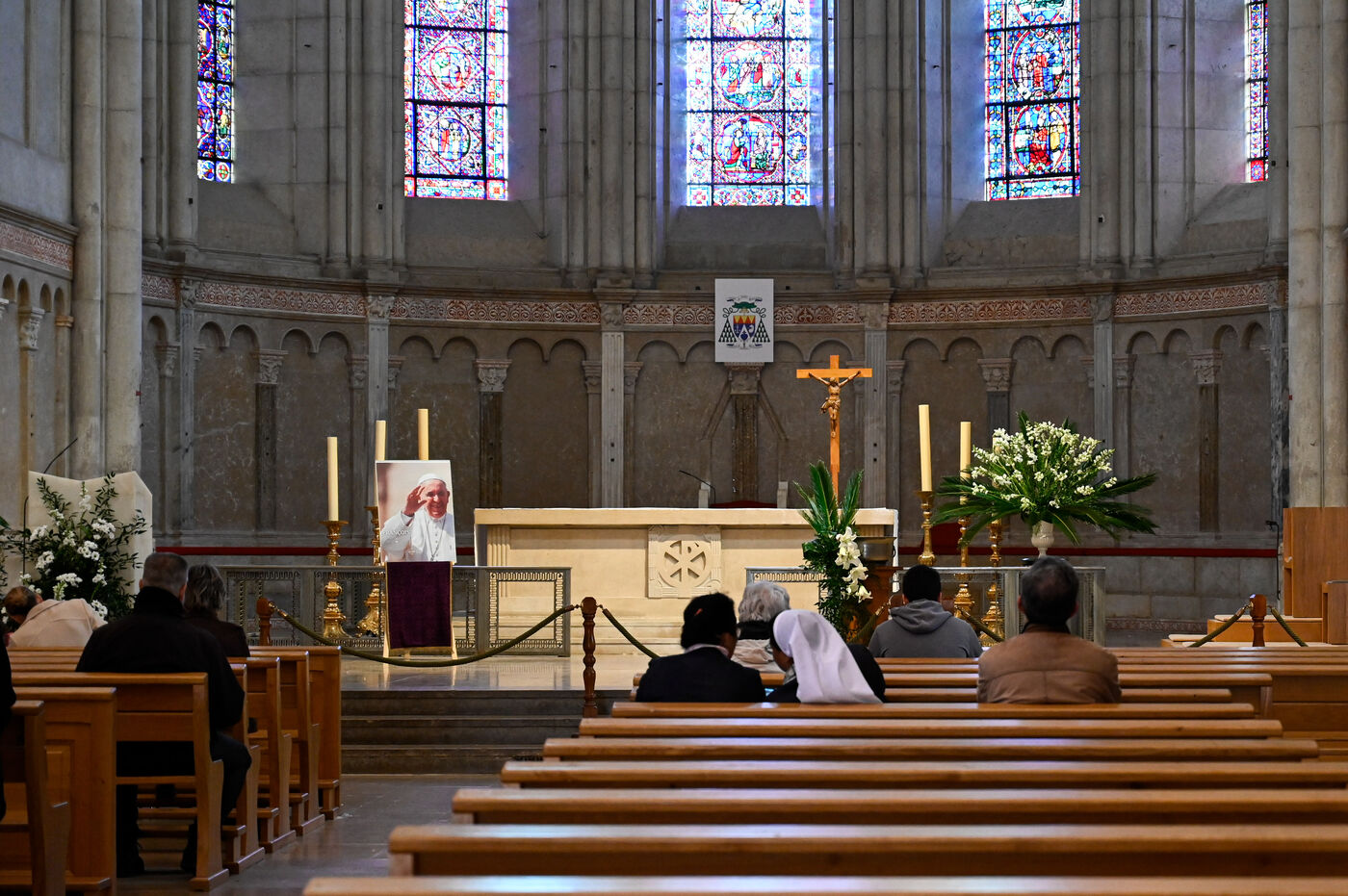 On Tuesday April 22, 2025, Lyon's Saint-Jean-Baptiste Cathedral hosted a mass in tribute to Pope François, who died the day before at the age of 88. The ceremony, presided over by Mgr Olivier de Germay, was attended by a large number of faithful who came to pay their last respects to the pontiff.