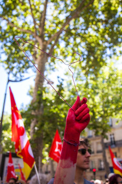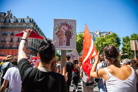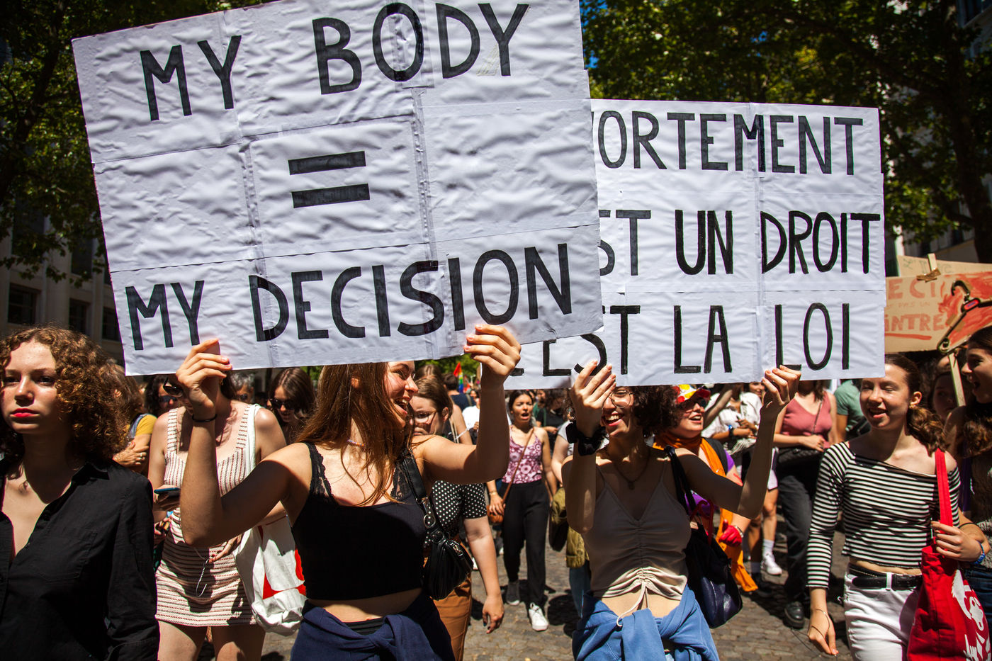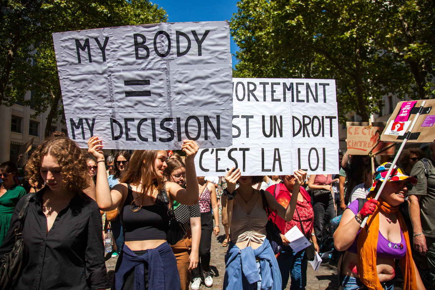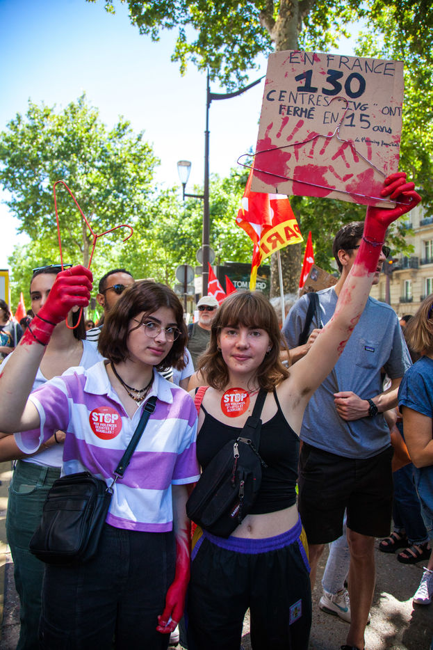 Le samedi 2 juillet 2022, des femmes et des hommes ont manifesté en solidarité avec les Etats-Unis pour le droit à l'avortement et à l'IVG contre la décision de la très conservatrice Cour suprême des Etats-Unis qui a révoqué ce droit le 24 juin dernier. Cette révocation elle renvoie les États-Unis à la situation en vigueur avant l'arrêt emblématique pris en 1973 : chaque État sera libre d'autoriser l'avortement ou non. La manifestation à Paris avait également pour objet d'inscrire le droit à l'IVG dans la Constitution Française.