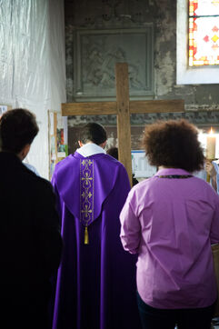 In the Christian tradition, the Way of the Cross (Via crucis) is a private or communal devotional act. By commemorating the Passion of Christ through the evocation of fourteen particular moments (some of which are traditional and not recorded in biblical writings), the faithful wish to receive the grace of intense communion with the sufferings of Christ, the Savior of mankind. These ceremonies are frequent during Lent, and especially on Good Friday. The ceremony sometimes involves a procession, interrupted by preaching, meditation and prayer, performed while standing before fourteen pictures, crucifixes or other symbols arranged either around the church or an adjoining area (usually a pathway reproducing the ascent to Calvary), or in the church itself.