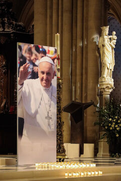 À l’occasion du décès du pape François, la cathédrale Notre-Dame de Paris a rendu hommage au souverain pontife avec plusieurs cérémonies : les cloches ont sonné 88 fois à 11h, suivies de deux messes à 12h et 18h, d’un chapelet à 19h, puis d’une veillée de prière de 20h à minuit. Les fidèles ont pu se recueillir et prier pour le repos de son âme dans un climat de grande émotion