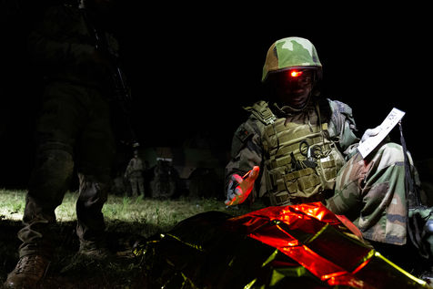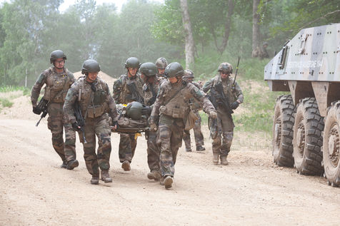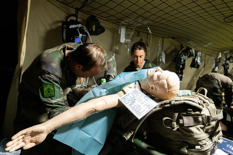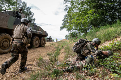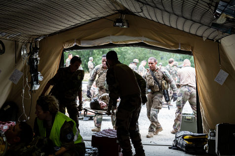 Training on the medical care of the wounded during an external operation of the French Army. The French Army Medical Corps is present during these trainings as well as the combat companies ready to be projected on the theatres of war.