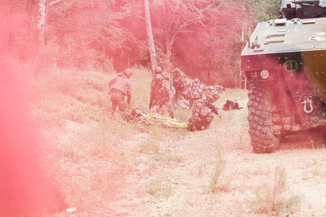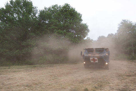 Entrainement sur la prise en charge médicale des blessés lors d'une opération extérieure de l' Armée Française. Lors de ces entrainements est présent le Corps Médical de L' Armée Française ainsi que les compagnies de combat prêtes aux projections sur les théatres de guerre.