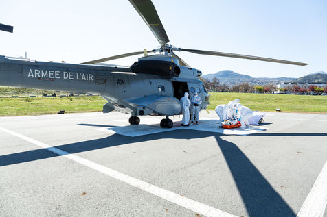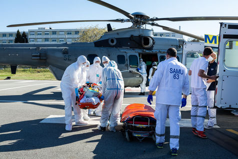 The RESILIENCE mission of the French Army, uses its air force to carry out patient transfers between Parisian hospitals and provincial structures. Patients arrived in Clermont-Ferrand before being transferred to the intensive care units.
