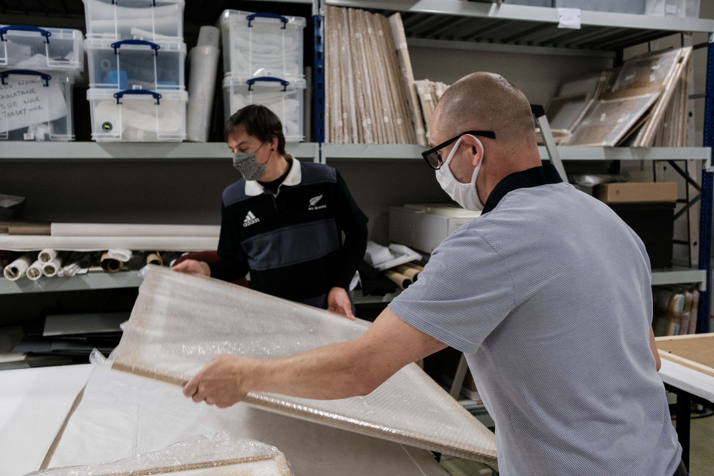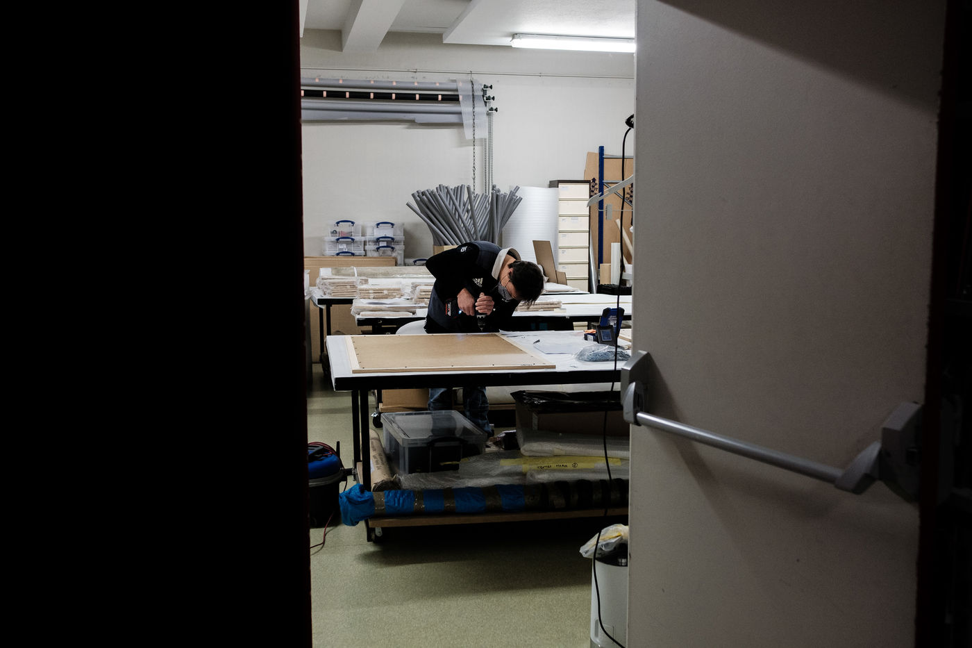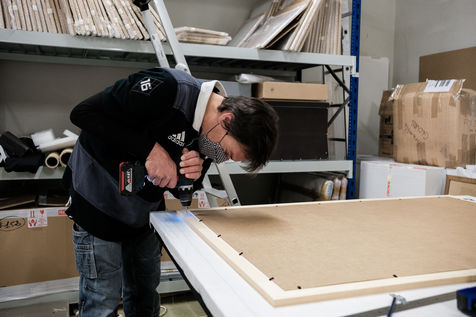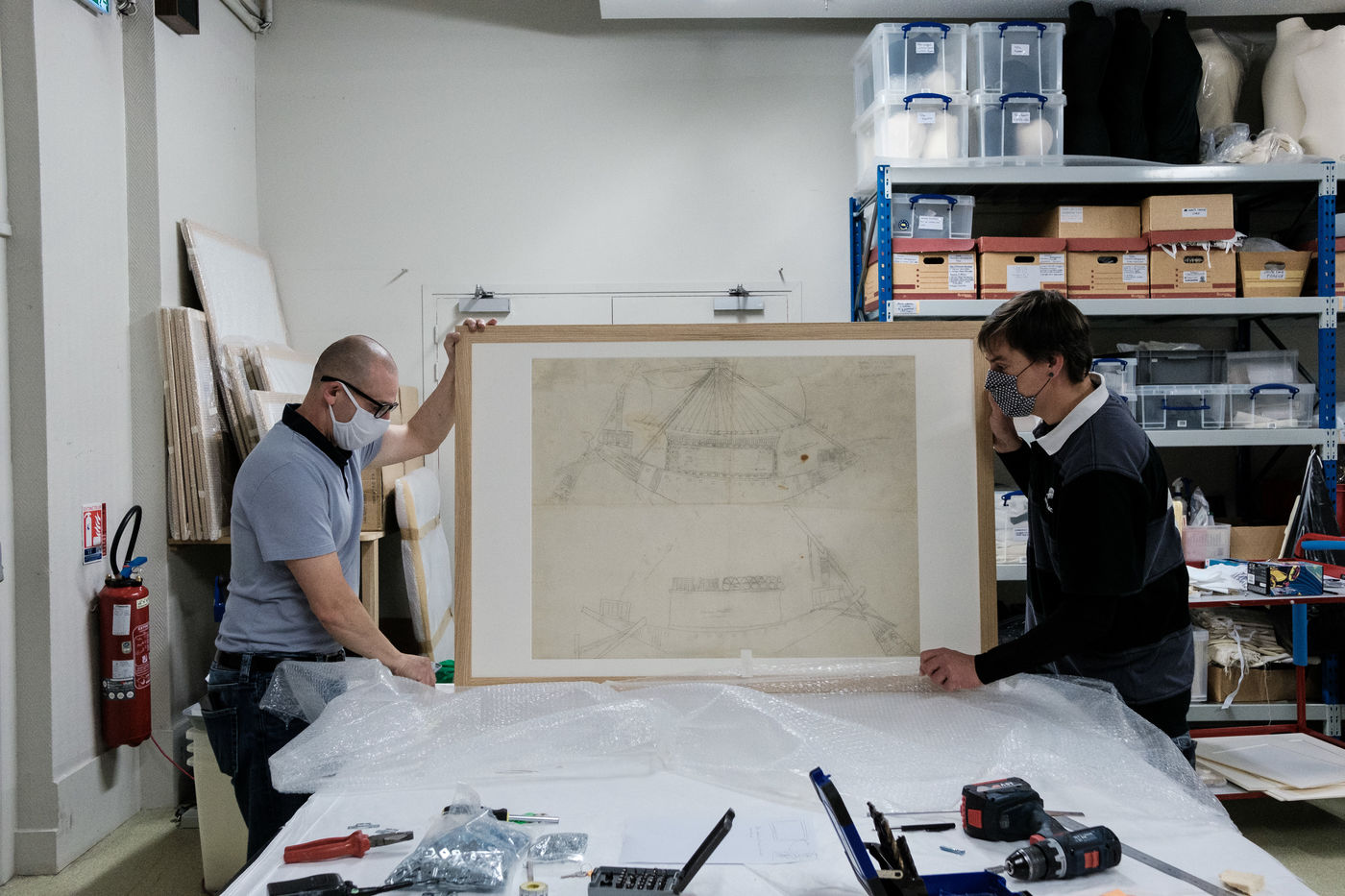 Pour l'heure la mise sous cadre des oeuvres, la scénographie de la salle ainsi que la mise en place des éléments de visite occupent les équipes.