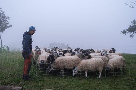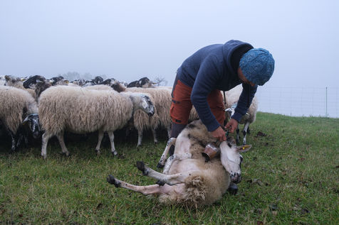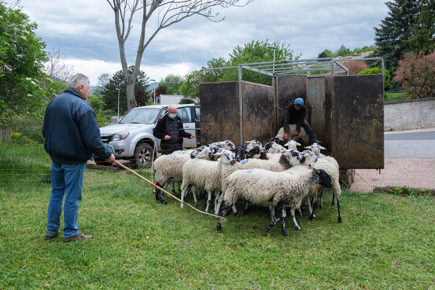 These animals belong to a local agricultural high school. Esteban is in charge of these sheep during his summer vacation. Throughout this period, a close monitoring will take place to limit the injuries and diseases of the animals. Following the passage of a ram, a morning of echography is organized to know the number of full ewes. Once back in the sheepfold, the lambing season will start.