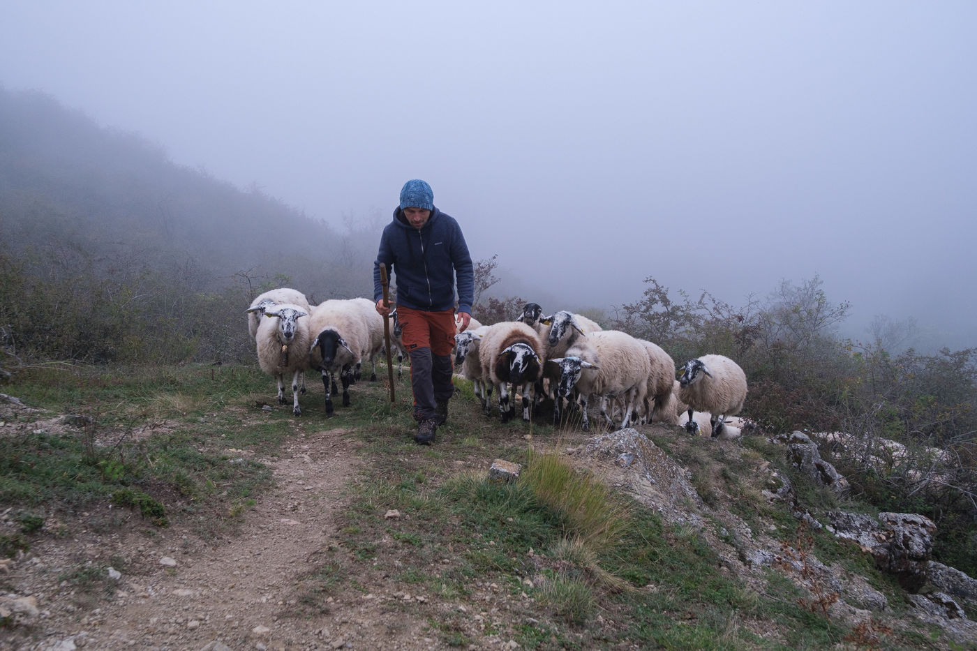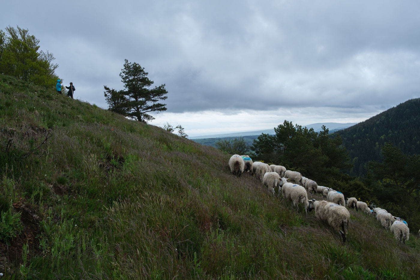 Led by Esteban, the flock of 49 ewes roams the domes of the Chaine des Puys.