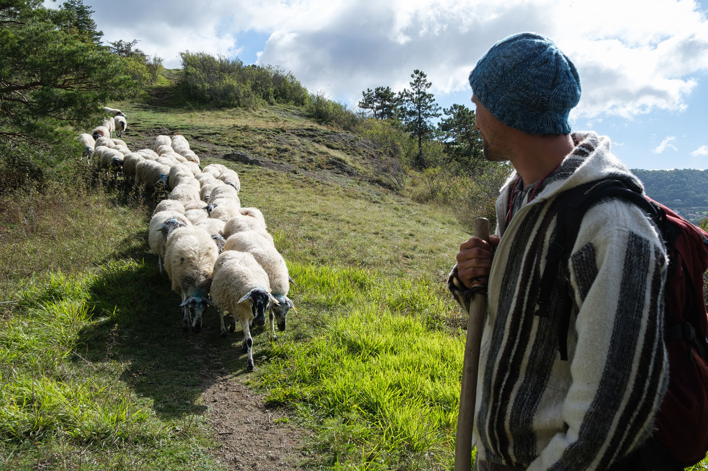 Mené par Esteban, le troupeau de 49 brebis parcourt les dômes de la chaine des Puys.