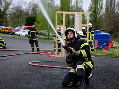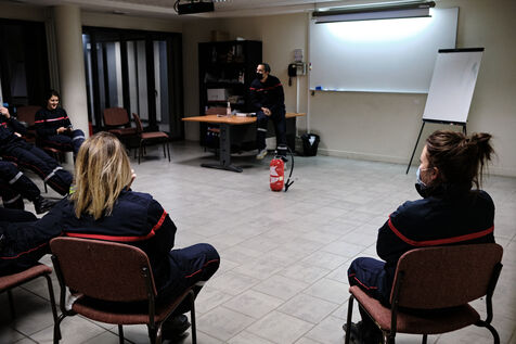 Following a physical and sports selection process, future volunteer firefighters begin their training. Once they've passed the medical examination and been fitted for their uniforms, firefighters learn the rudiments of first aid and firefighting. Once they've completed their training, they'll be fit to ride in any truck on duty.