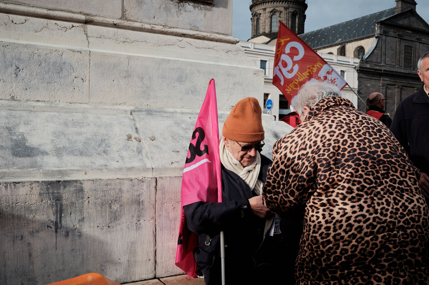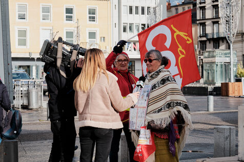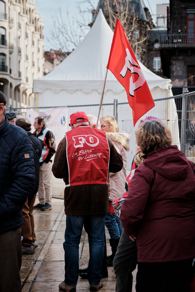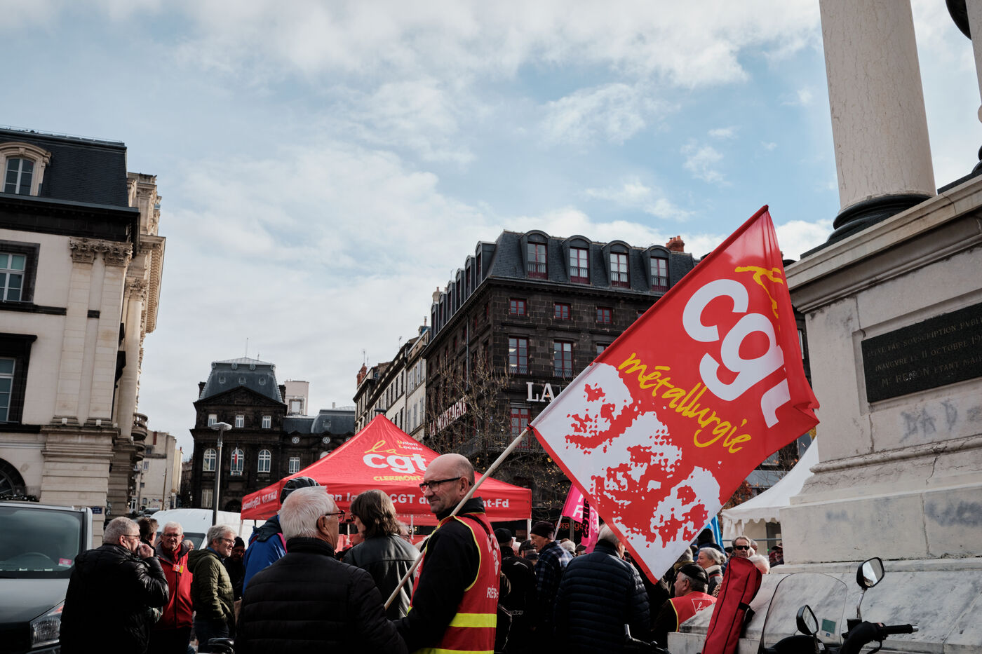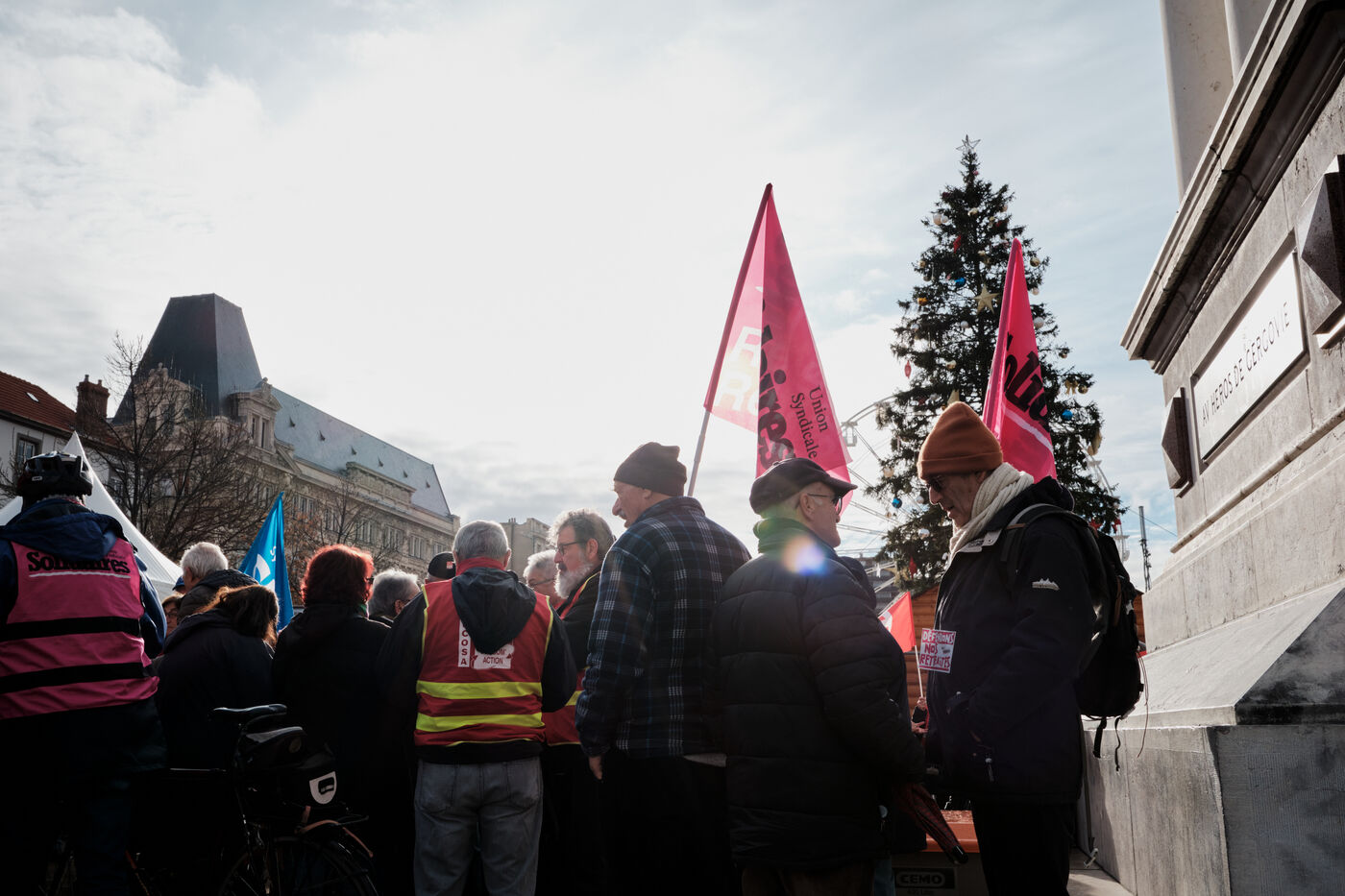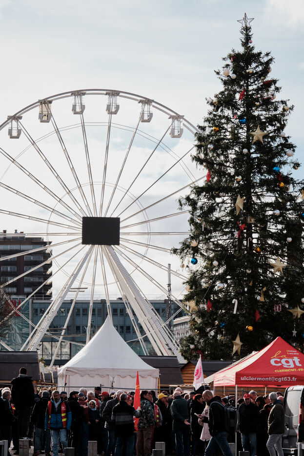 A l appel de 10 organisations syndicales, des retraites du Puy de Dame se sont réunis place de Jaude a Clermont Ferrand. C est a cote du marche de Noel clermontois qu ils se sont réunis pour demander une revalorisation de leurs pensions du montant de l inflation au 01 Janvier 2025. Les retraites exigent aussi le rattrapage des pertes du pouvoir d achat subies depuis 2017 ainsi qu un niveau de pension minimum égal au SMIC.