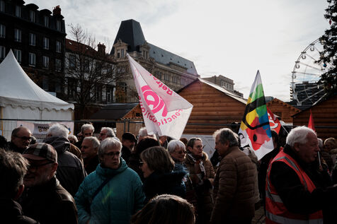 Following a call from 10 trade union organisations, pensioners from the Puy de Dame met at Place de Jaude in Clermont Ferrand. They gathered next to the Clermont-Ferrand Christmas market to demand that their pensions be increased by the rate of inflation on 01 January 2025. The pensioners are also demanding that the losses in purchasing power suffered since 2017 be made good, as well as a minimum pension equal to the minimum wage.